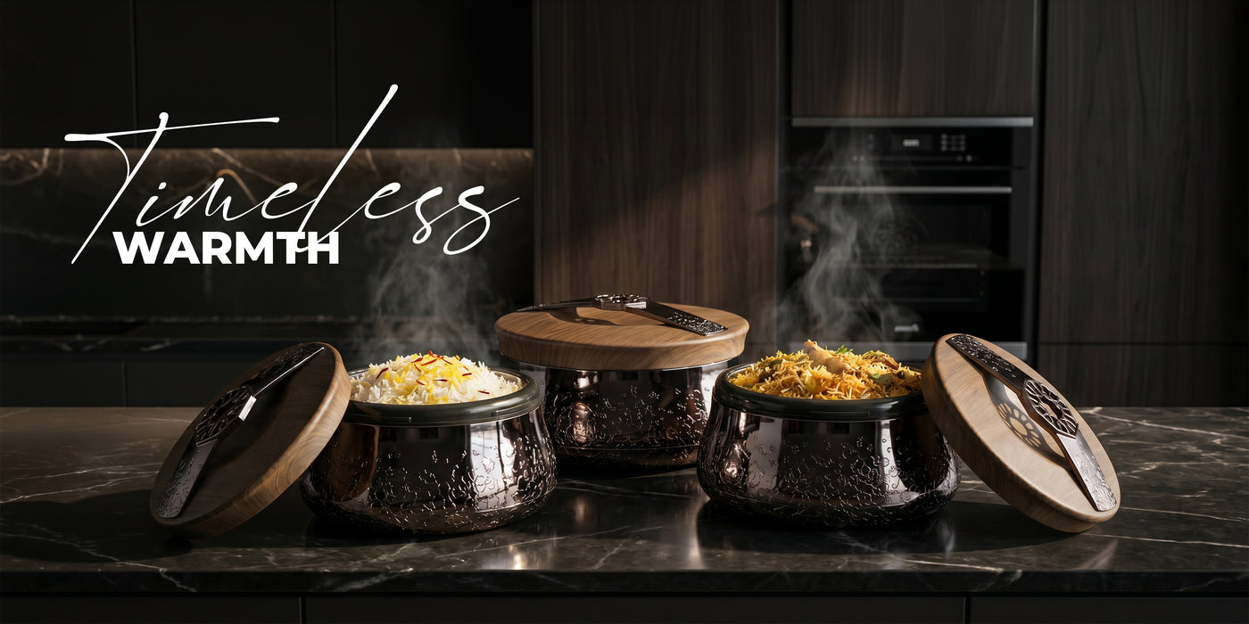 Nourhan - Food Thermos/ Warm Serv (Set of 3) - Bronze & Silver