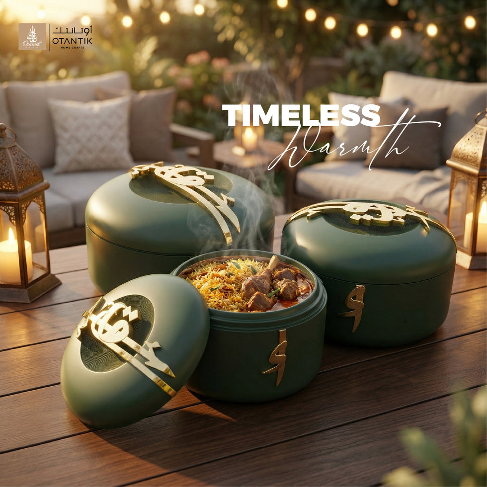 Liqa'a - Food Thermos/ Warm Serv (Set of 3) - Olive Green & Gold