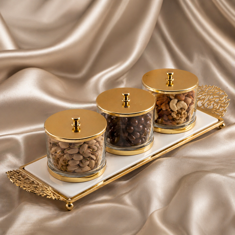 Luxury Gold Glass Canister Set – 3-Piece Jar Set with Tray by Otantik Home
