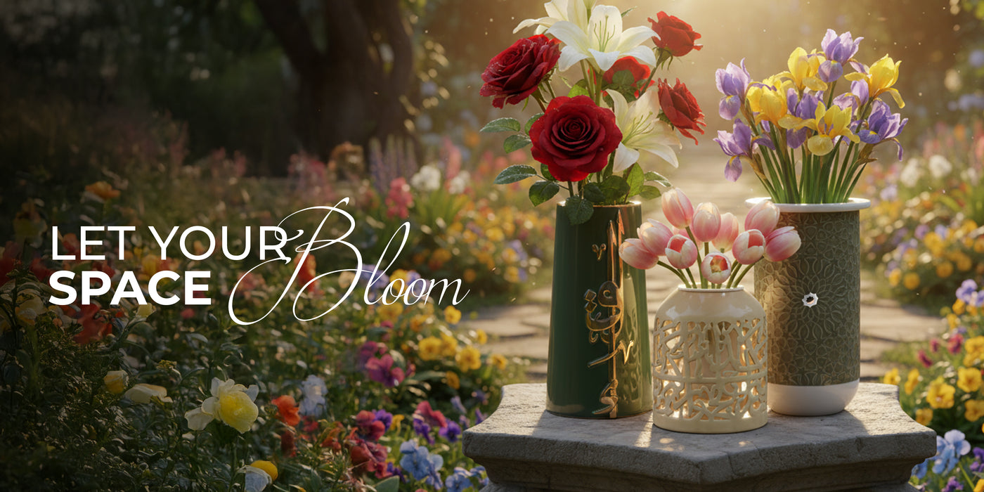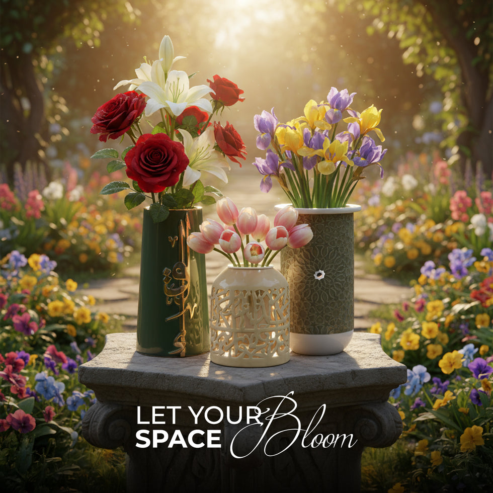 Luxury Noor - Medium Decorative Vase - Blue & Silver