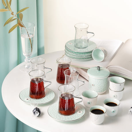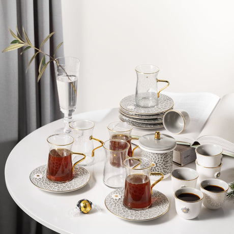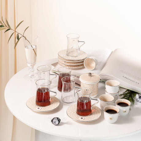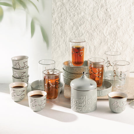 Jiwar - Tea Set (19-Pc) - Beige & Silver