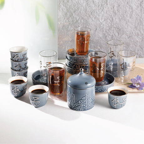 Atheer - Tea Set (19-Pc) - Dark Blue & Silver