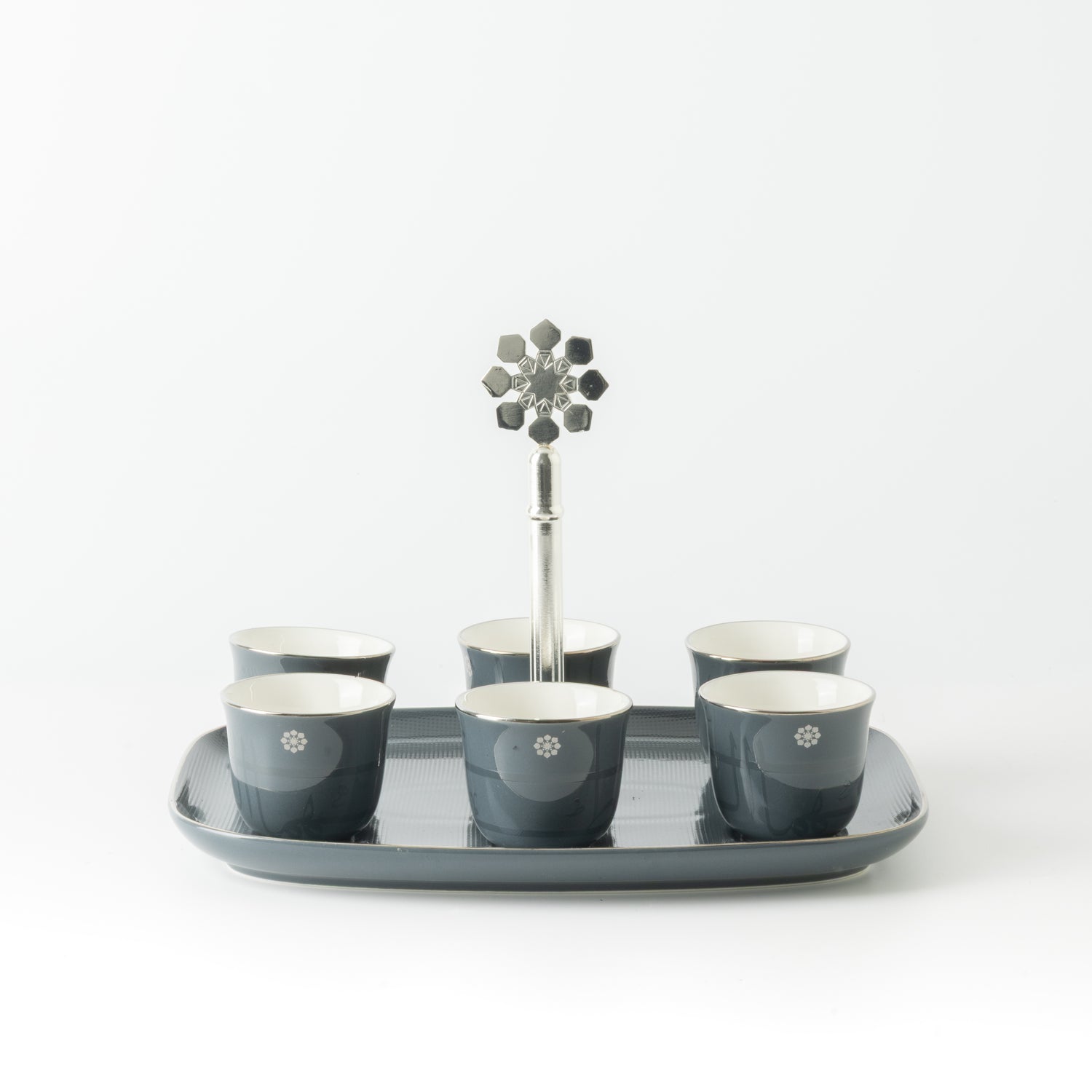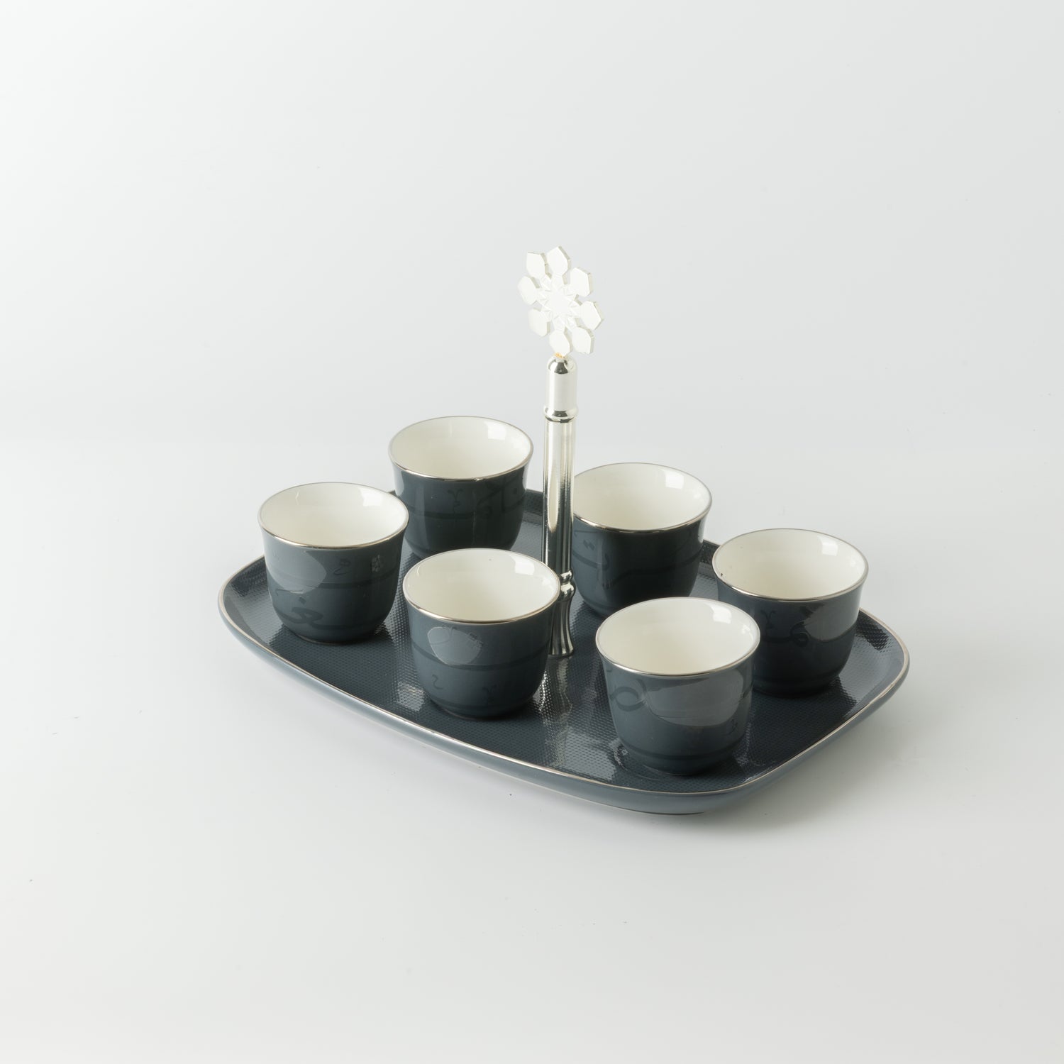 Mirral - Arabic Coffee Cups With Holder - Dark Blue & Silver