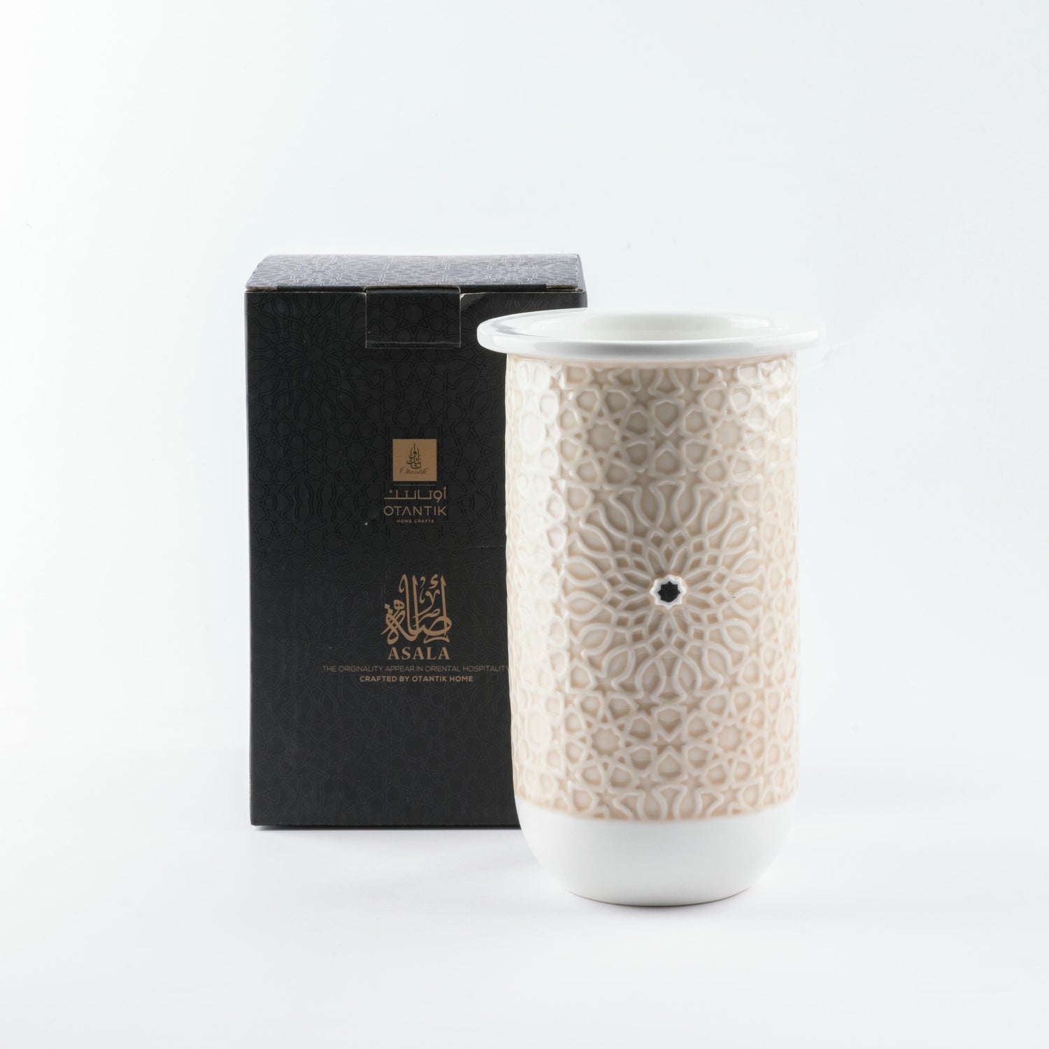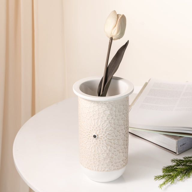 Asala - Medium Decorative Vase - Beige & Silver