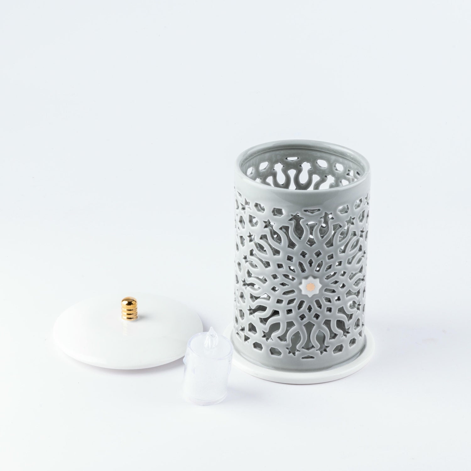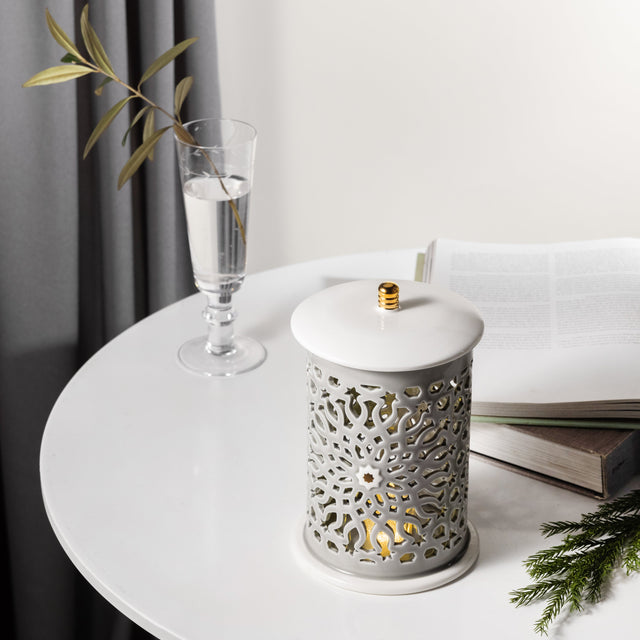 Asala - Medium Lantern Candle Holder - Grey & Gold