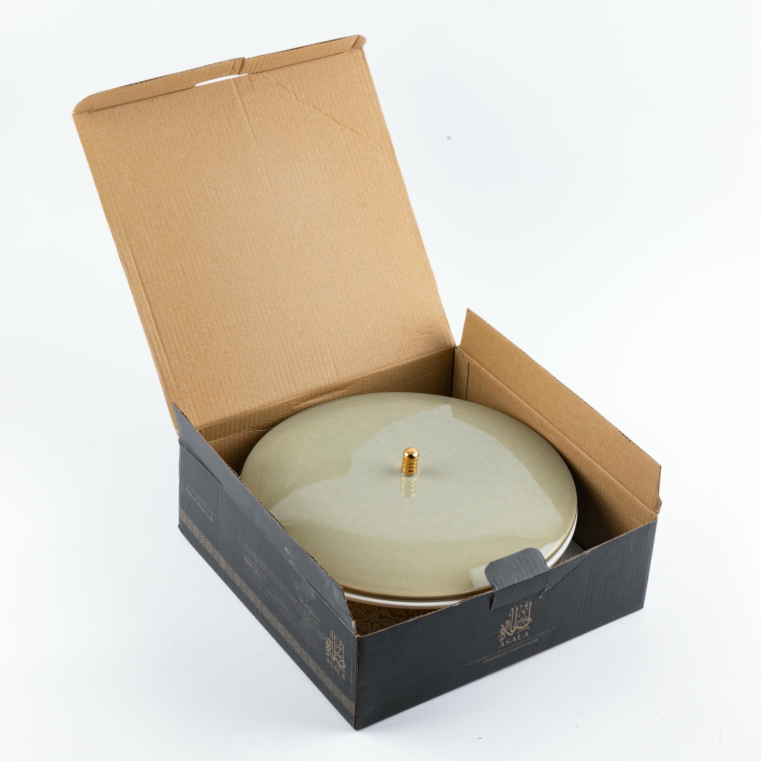 The Asala Large Decorative Canister is a stunning centerpiece that combines timeless tradition with refined sophistication. Crafted from premium porcelain, it serves as the perfect vessel for displaying dates or other treats, enhancing your dining experience with every use. Whether for special occasions or everyday moments, this exquisite piece adds an air of elegance, transforming any setting into one of luxury and grace.