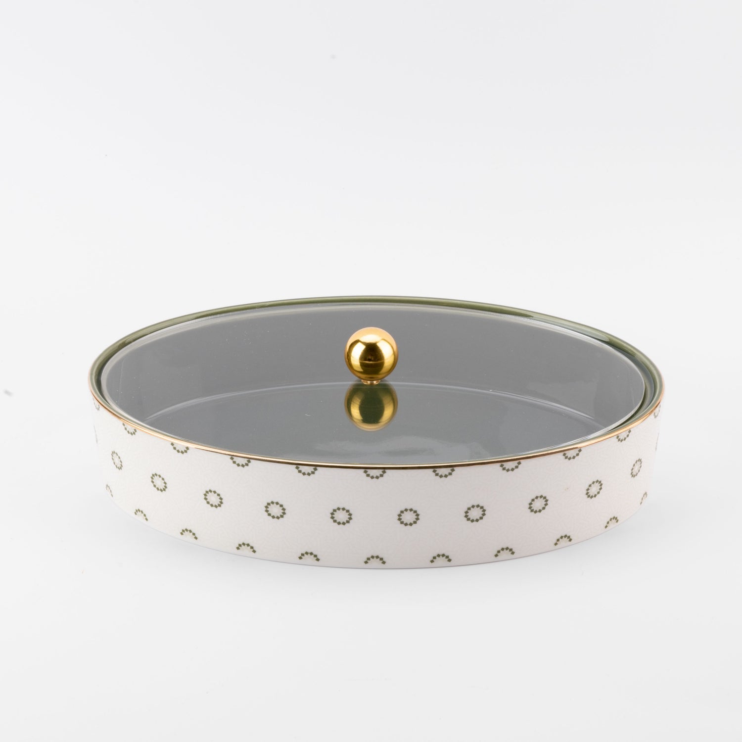 Atheer - Large Decorative Canister - Olive Green & Gold