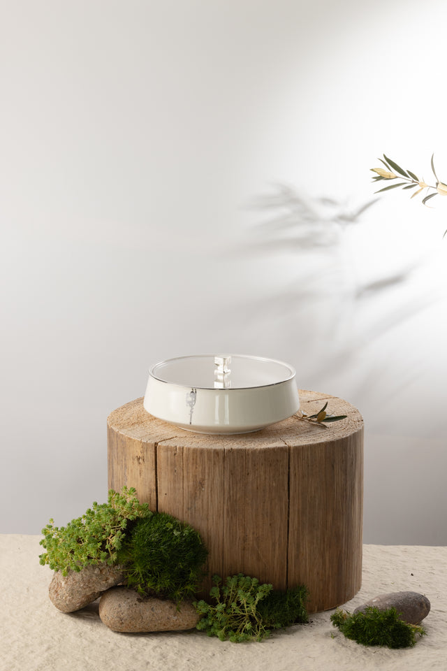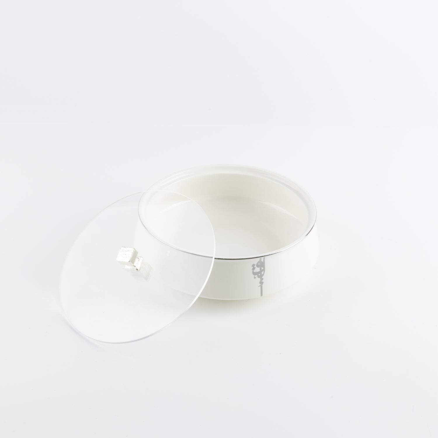 Liqa'a - Medium Decorative Canister - Pearl White & Silver