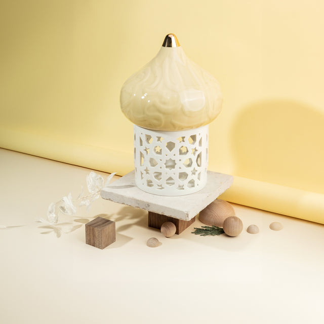 Diwan - Large Lantern Candle Holder - Ivory & Gold