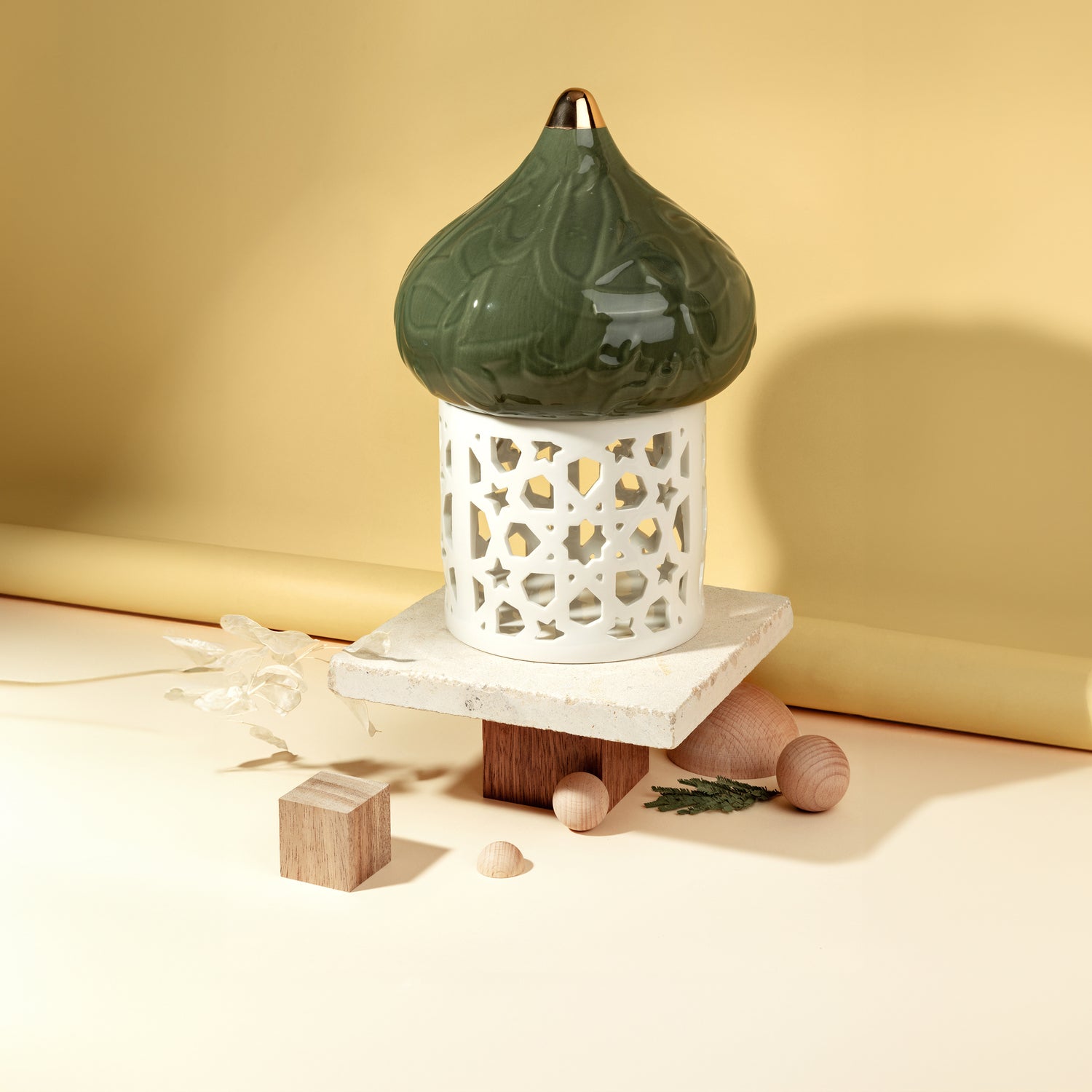 The top piece acts as a decorative cover, offering both aesthetic refinement and added safety. It’s adorned with luxurious Arabic-inspired designs that elevate the overall look, making this candle holder not just functional, but a true statement of cultural elegance.