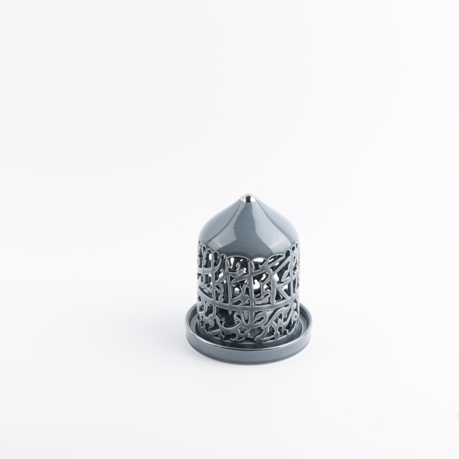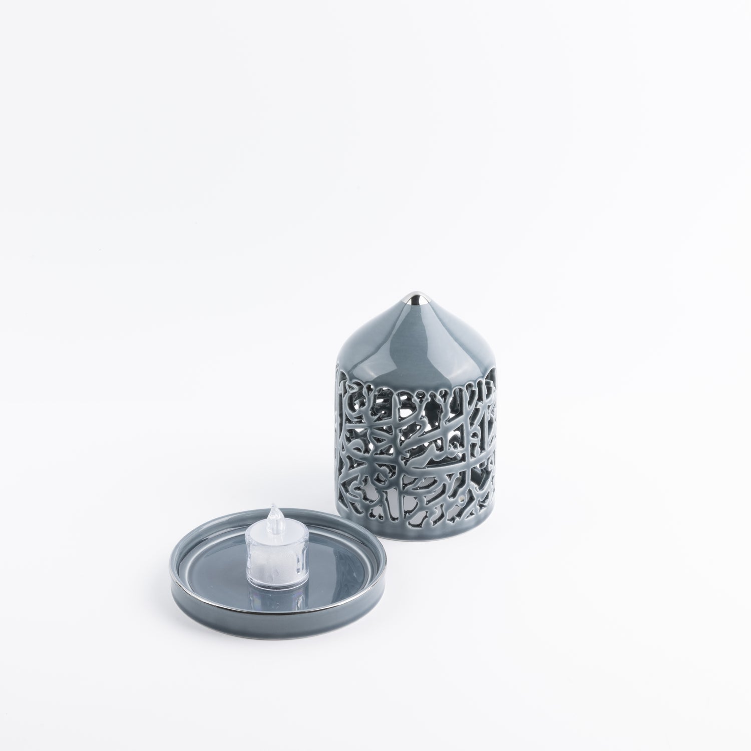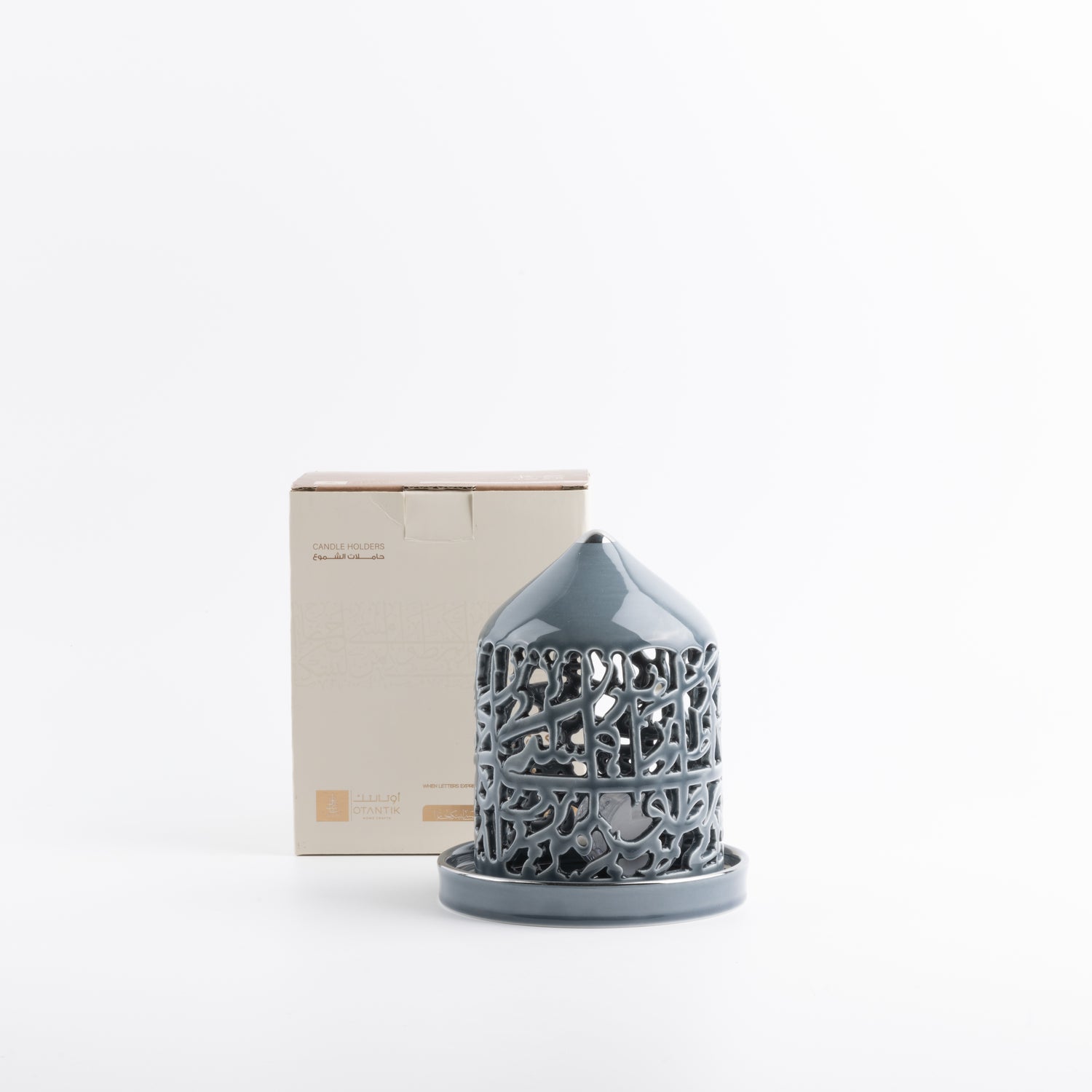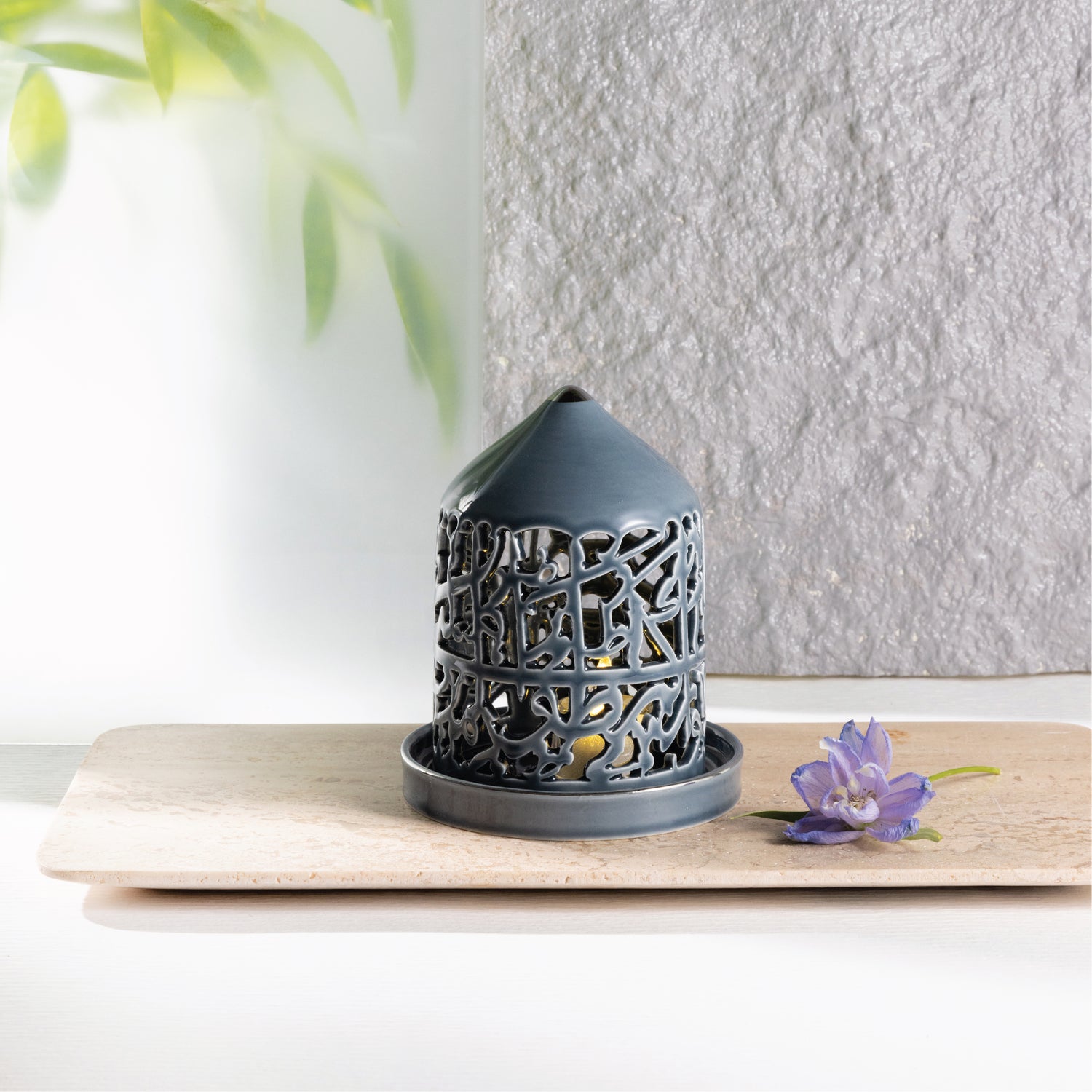 Jiwar -Small Lantern Candle Holder - Haze Blue & Silver