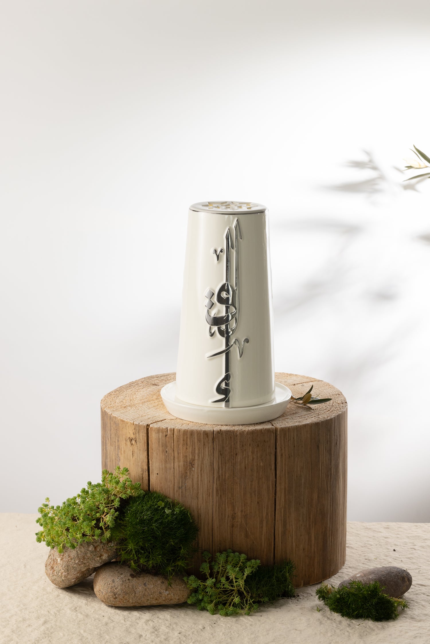 Liqa'a - Large Lantern Candle Holder - Pearl White & Silver