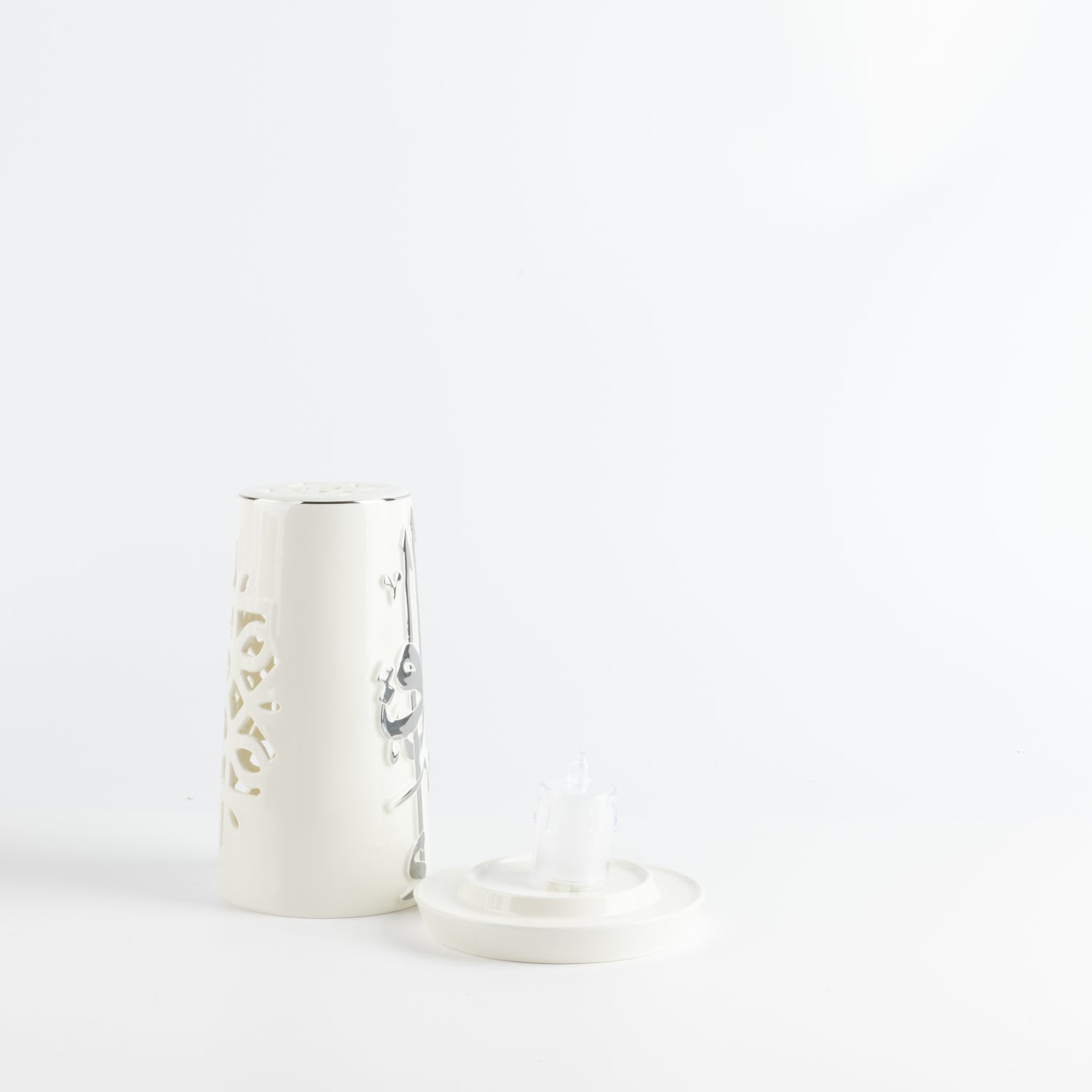 Liqa'a - Medium Lantern Candle Holder - Pearl White & Silver