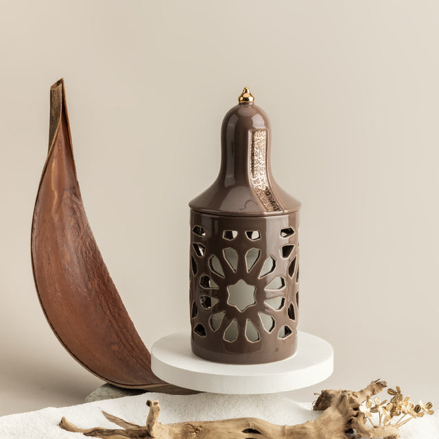 Luxury Noor - Medium Lantern Candle Holder - Brown & Gold