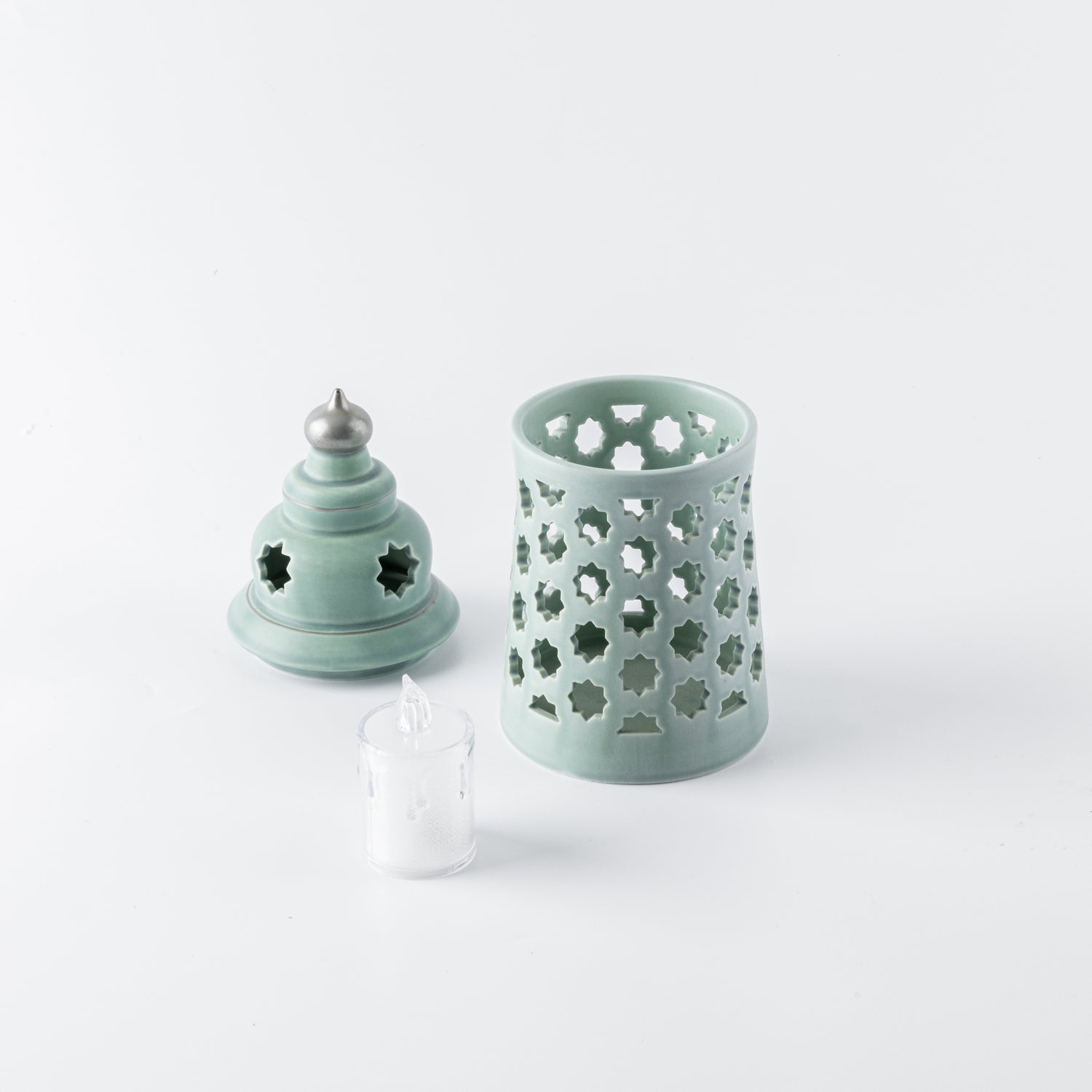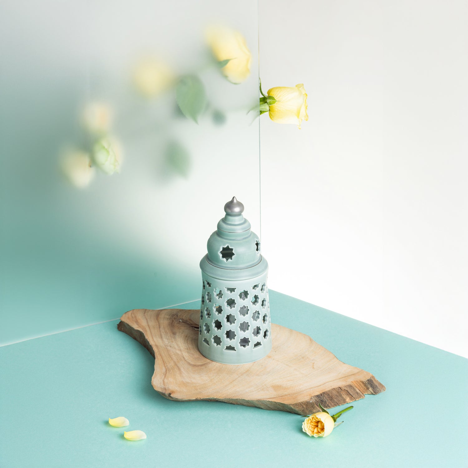 Rosette - Medium Candle Holder - Baby Blue & Silver