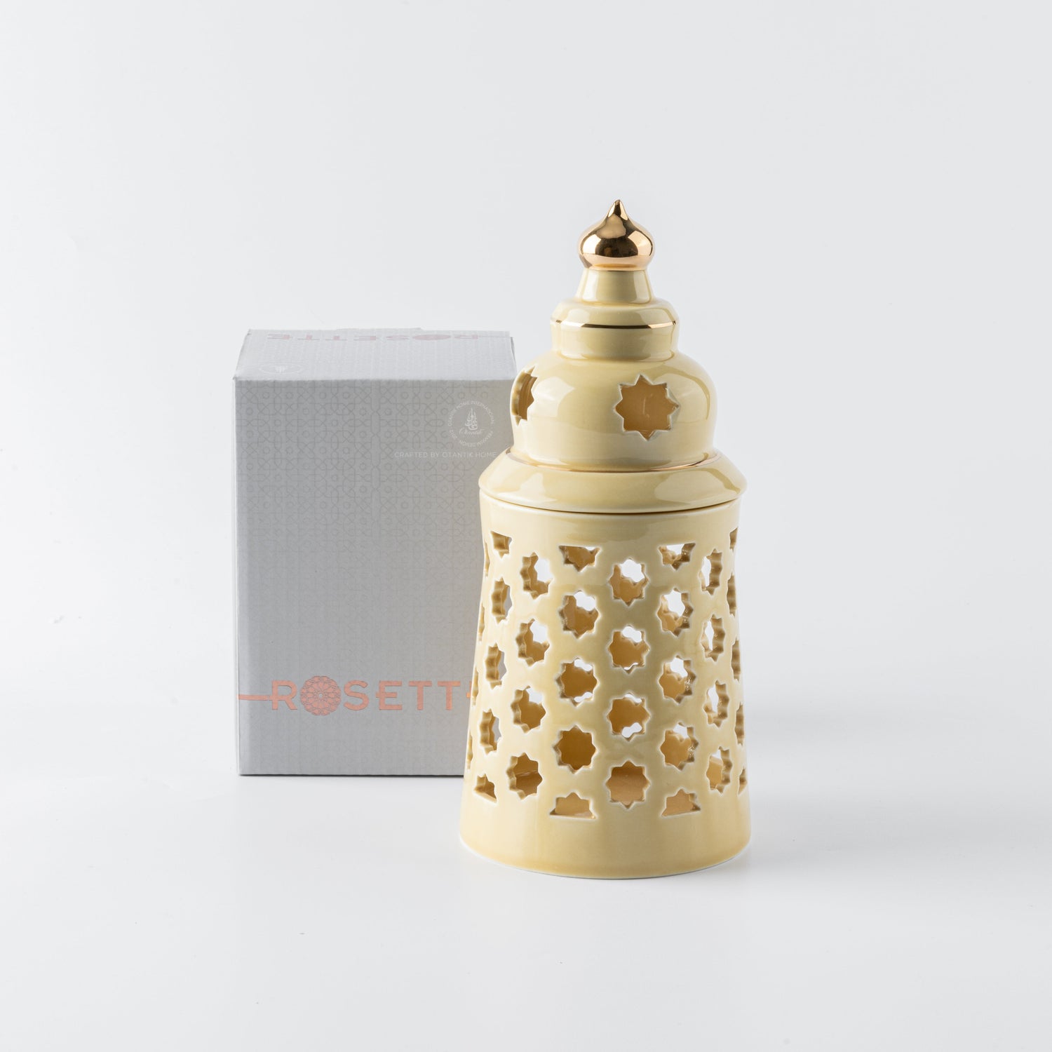 Rosette - Medium Candle Holder - Ivory & Gold is backordered and will ship as soon as it is back in stock.