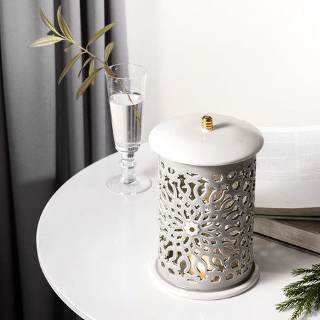 Liqa'a - Medium Lantern Candle Holder - Pearl White & Silver