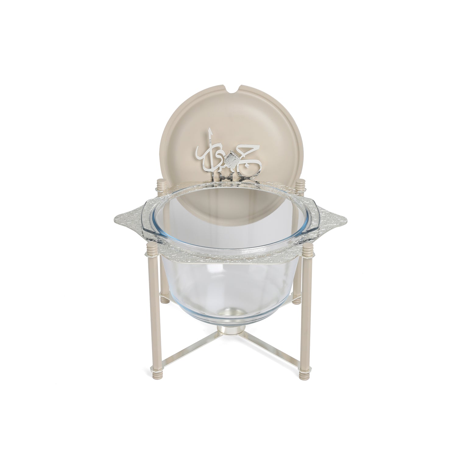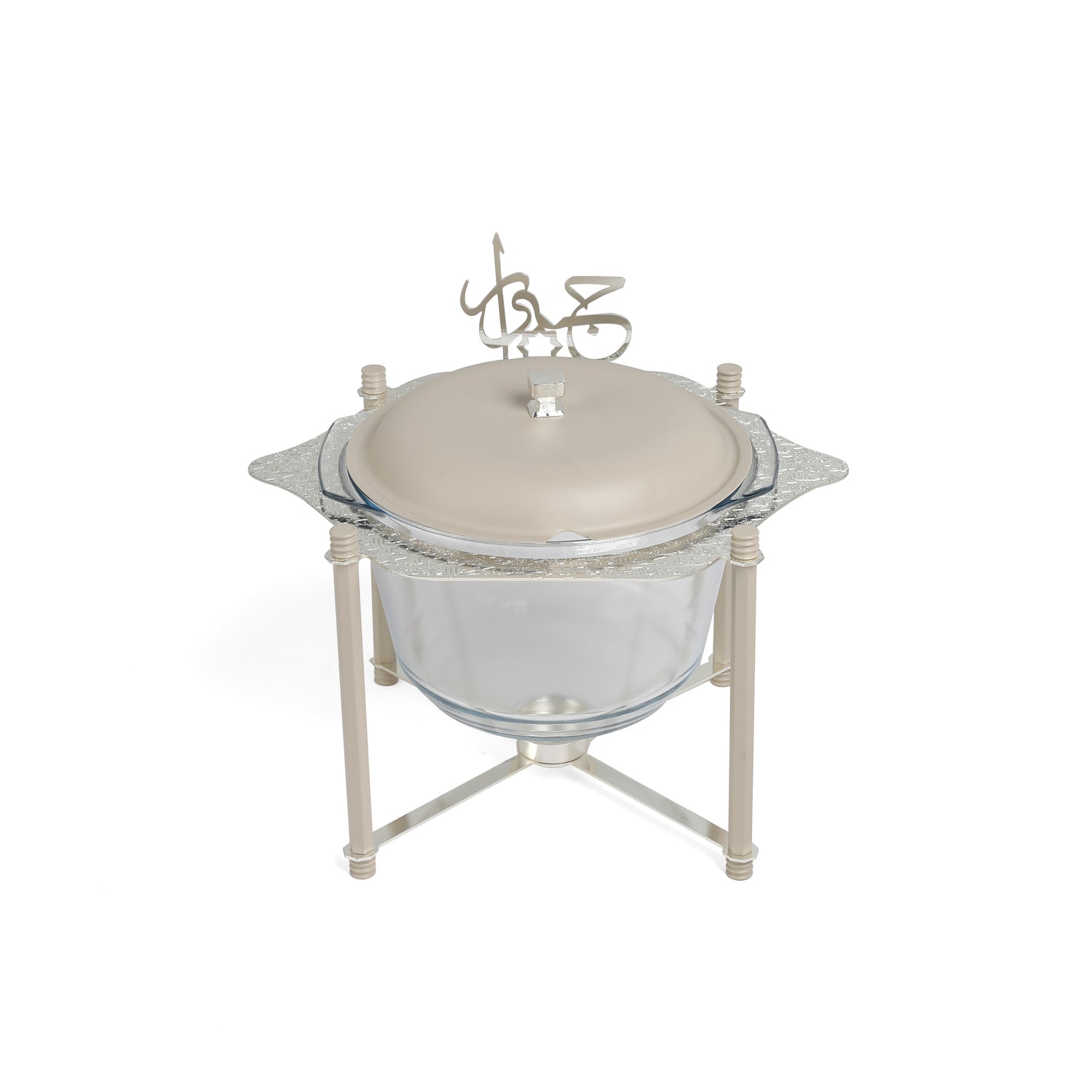 Serve in style with the Jiwar Elegant Soup Buffet with Engraved Gold Base, where traditional artistry meets modern luxury. Designed for refined gatherings, this stunning piece features a premium glass pot set atop a gold-plated stainless steel base, beautifully engraved with intricate Arabic calligraphy that celebrates cultural heritage.
