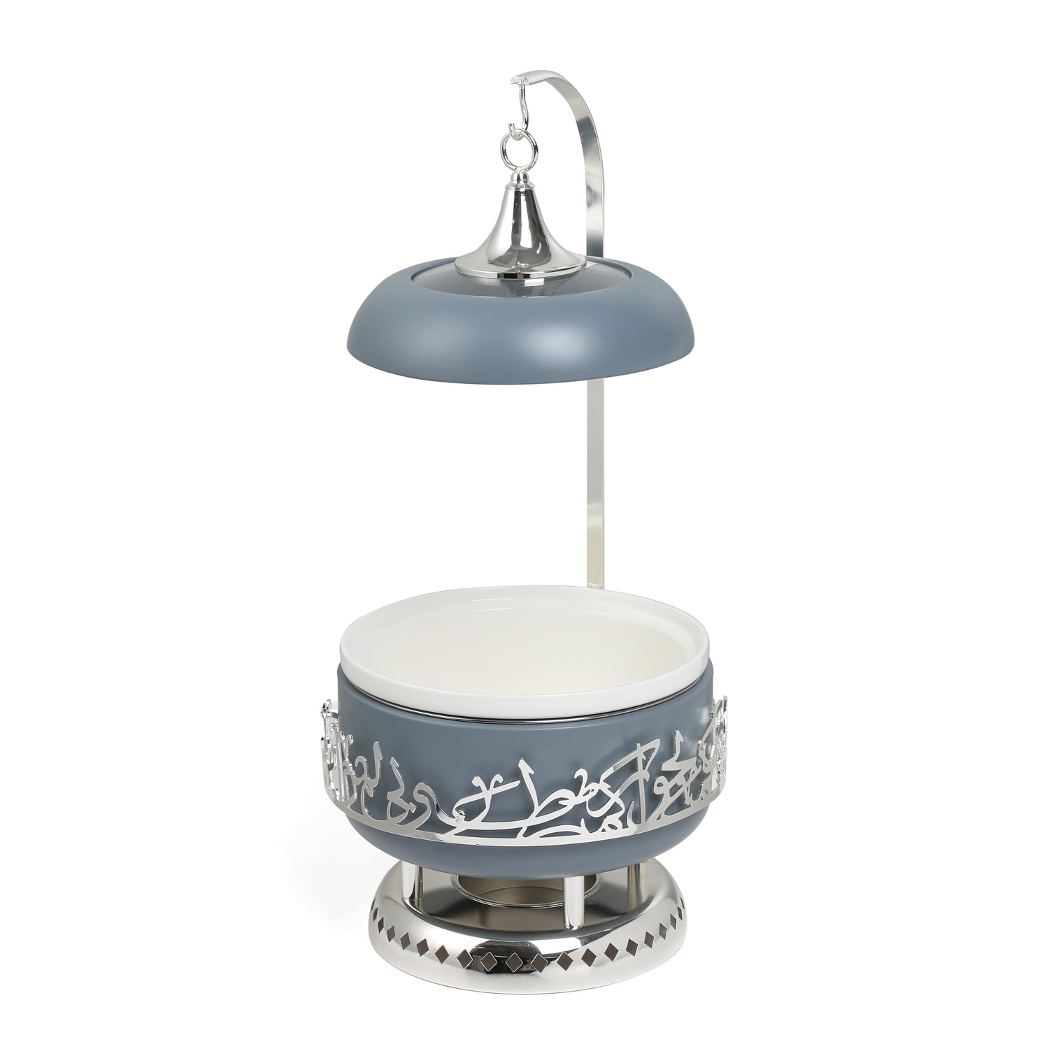 The Jiwar - 4 Liters Chafer is the ultimate choice for serving larger portions with elegance and efficiency. Built with an updated and upgraded design, this chafer features a sturdy stainless steel base that ensures durability and a modern aesthetic. The innovative water bowl system provides even heat distribution, preventing food from drying out while keeping it at the perfect temperature. The porcelain bowl offers a luxurious touch, while the transparent lid keeps your dishes protected and fresh. Designed with a lid hanger for easy storage during service, this chafer is powered by Sterno for consistent heat. Whether you're catering a large event, hosting a buffet, or preparing a family-style meal, the Jiwar - 4 Liters Chafer brings both sophistication and functionality to your dining experience.