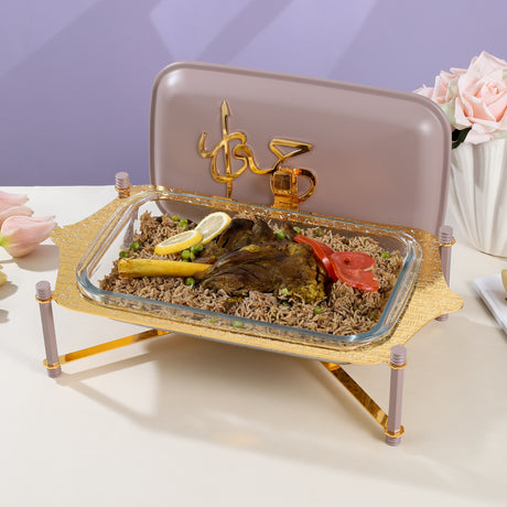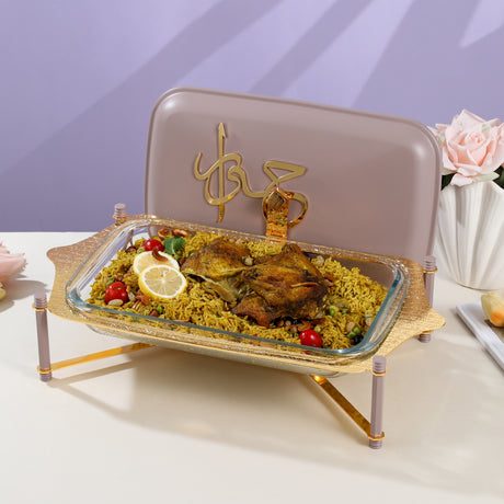 Jiwar - Large Twin Candle Pyrex Chafer- Lavender & Gold