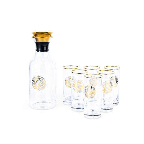 Zuwar - Glass Jug & 6 Tall Cups - Gold
