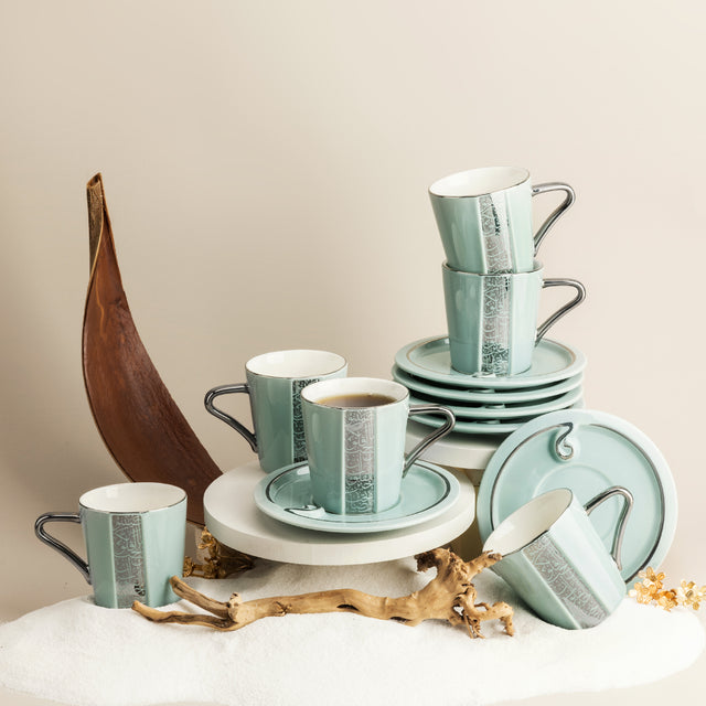 Luxury Noor - Trukish Coffee (12-Pc)- Blue & Silver is backordered and will ship as soon as it is back in stock.