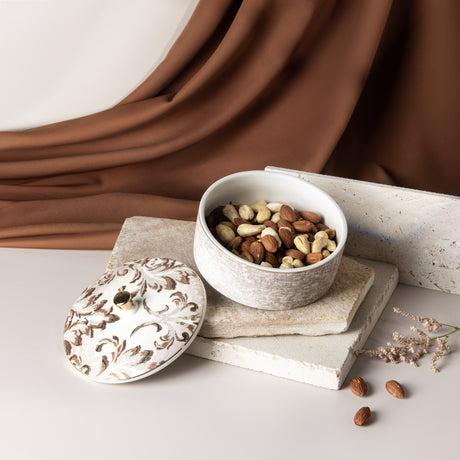 Classy Harir - Decorative Small Canister/Server - Beige & Gold