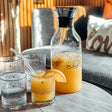 Quench your thirst in style with the Zuwar Glass Jug & 6 Short Cups. Perfect for serving up your favorite drinks, this sleek set is made of durable glass and features a shiny silver finish. Upgrade your next gathering with this must-have addition to your tableware collection!