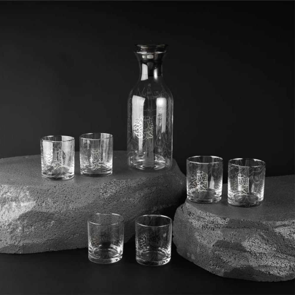 Zuwar- Glass Jug & 6 Short Cups - Silver