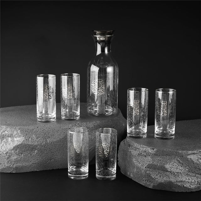 Zuwar Joud- Glass Jug & 6 Tall Cups - Silver