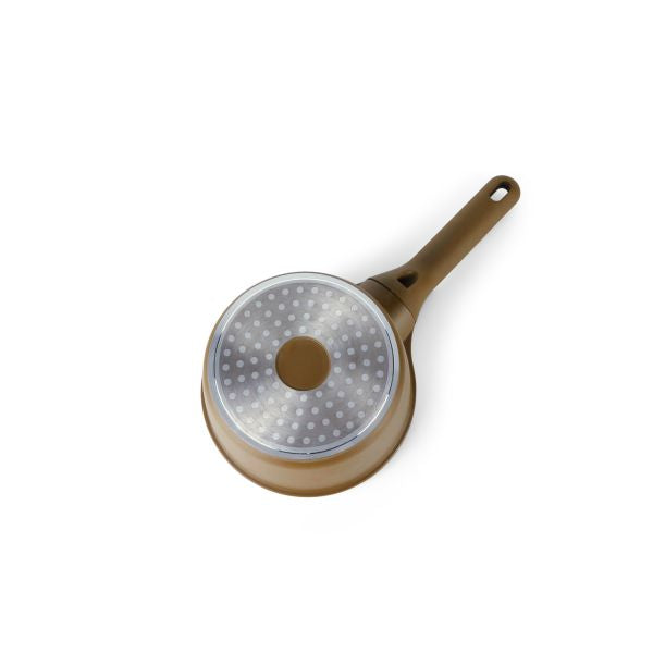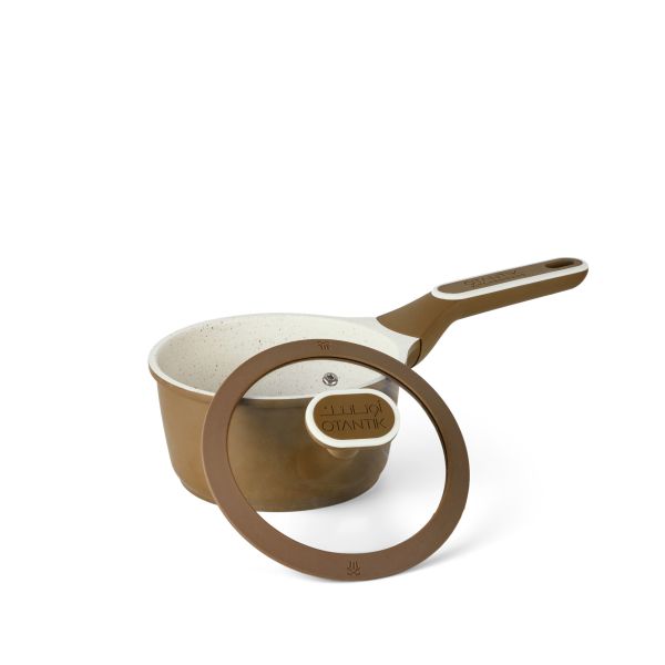 Otantik Non-Stick 1-qt Saute Pan with Lid Cast Aluminum - Ceramic Marble Coating - Cool Handles - Compatible with All Stovetops (Brown)