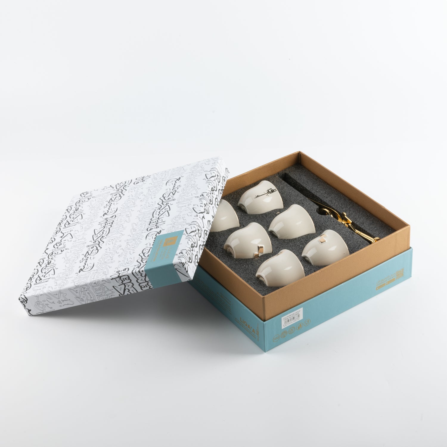 Liqa'a - Arabic Coffee Cups With Holder - Beige & Gold