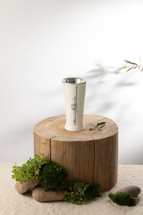 Liqa'a - Small Lantern Candle Holder - Pearl White & Silver