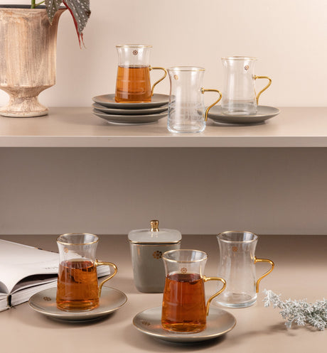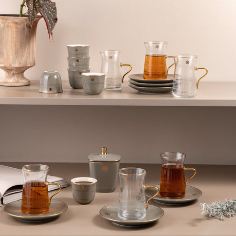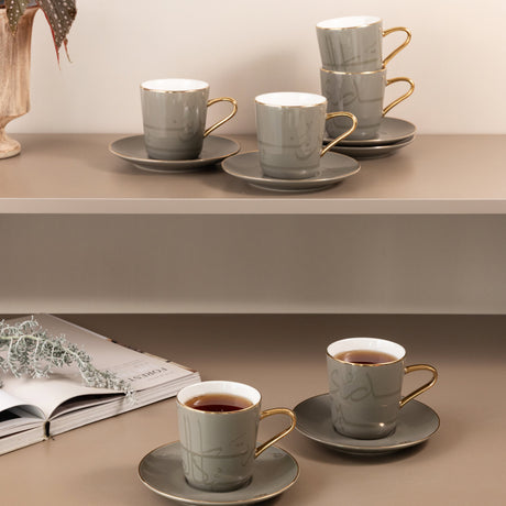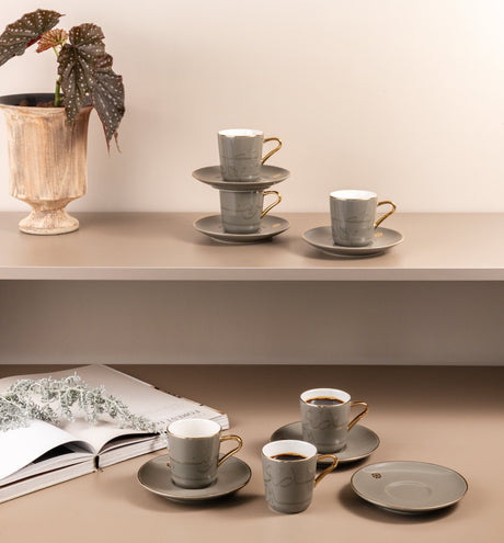 Mirral - Espresso/Turkish Coffee Set (12-Pc) - Grey & Gold