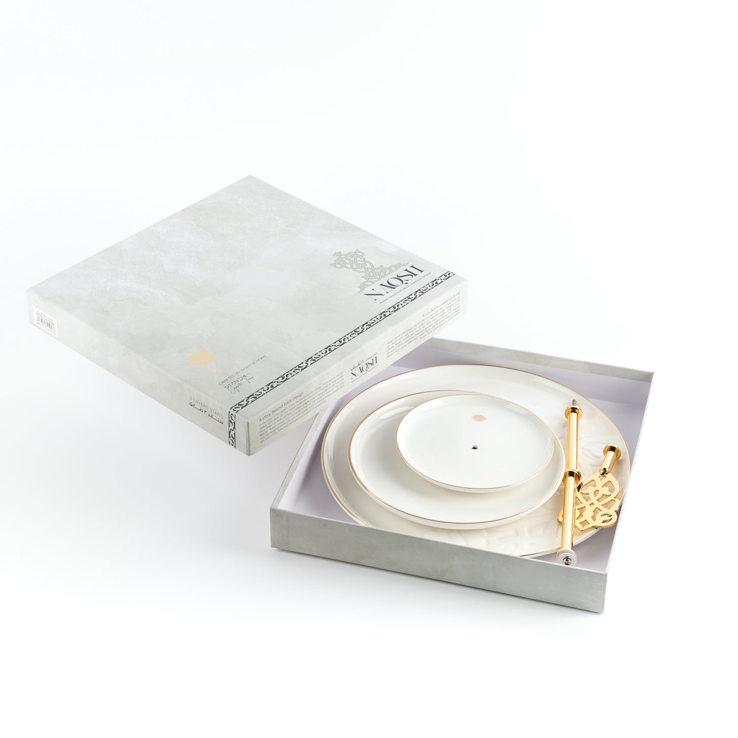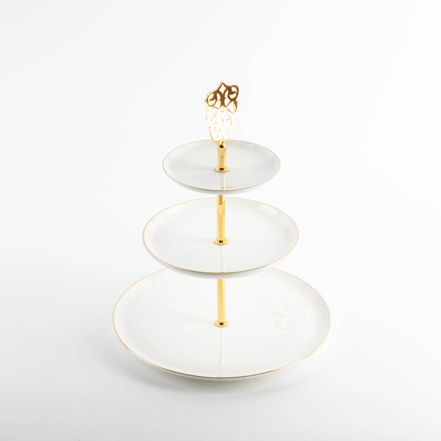 The Naqsh 3-Tier Plate transforms serving into an art form — a perfect harmony of elegance and function. Designed to showcase desserts, fruits, or savory bites with refined presentation, it brings a touch of timeless luxury to every gathering.