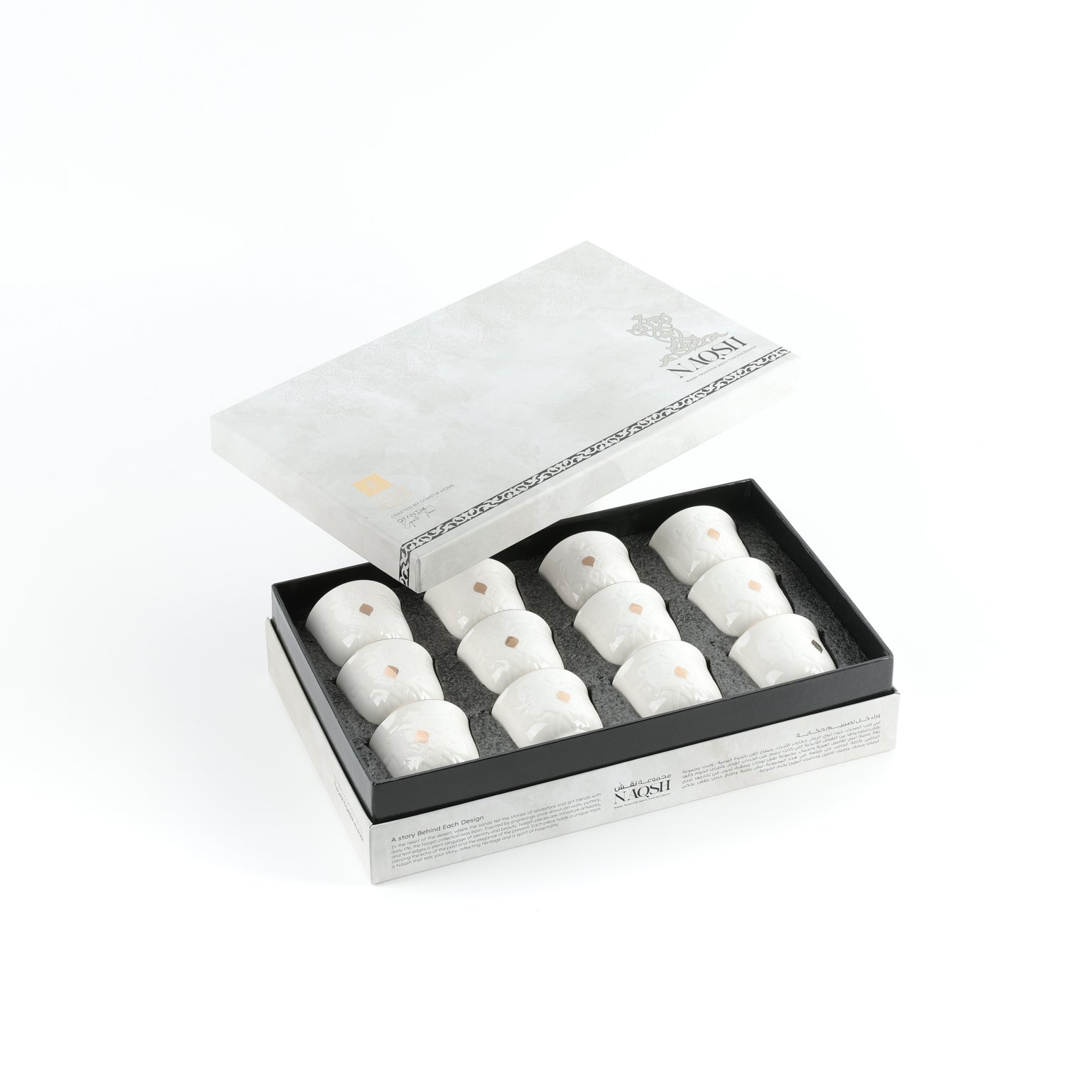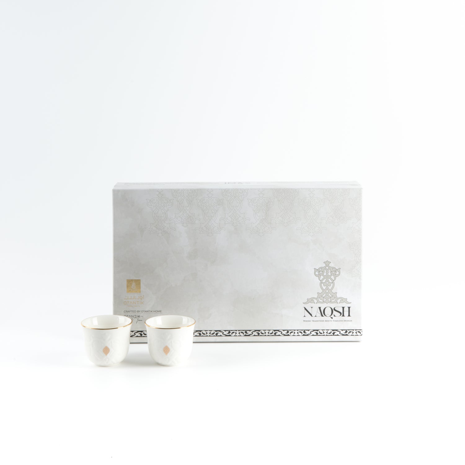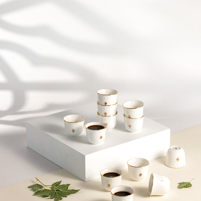 Naqsh - Arabic Coffee Cups (12-Pc)-White & Gold