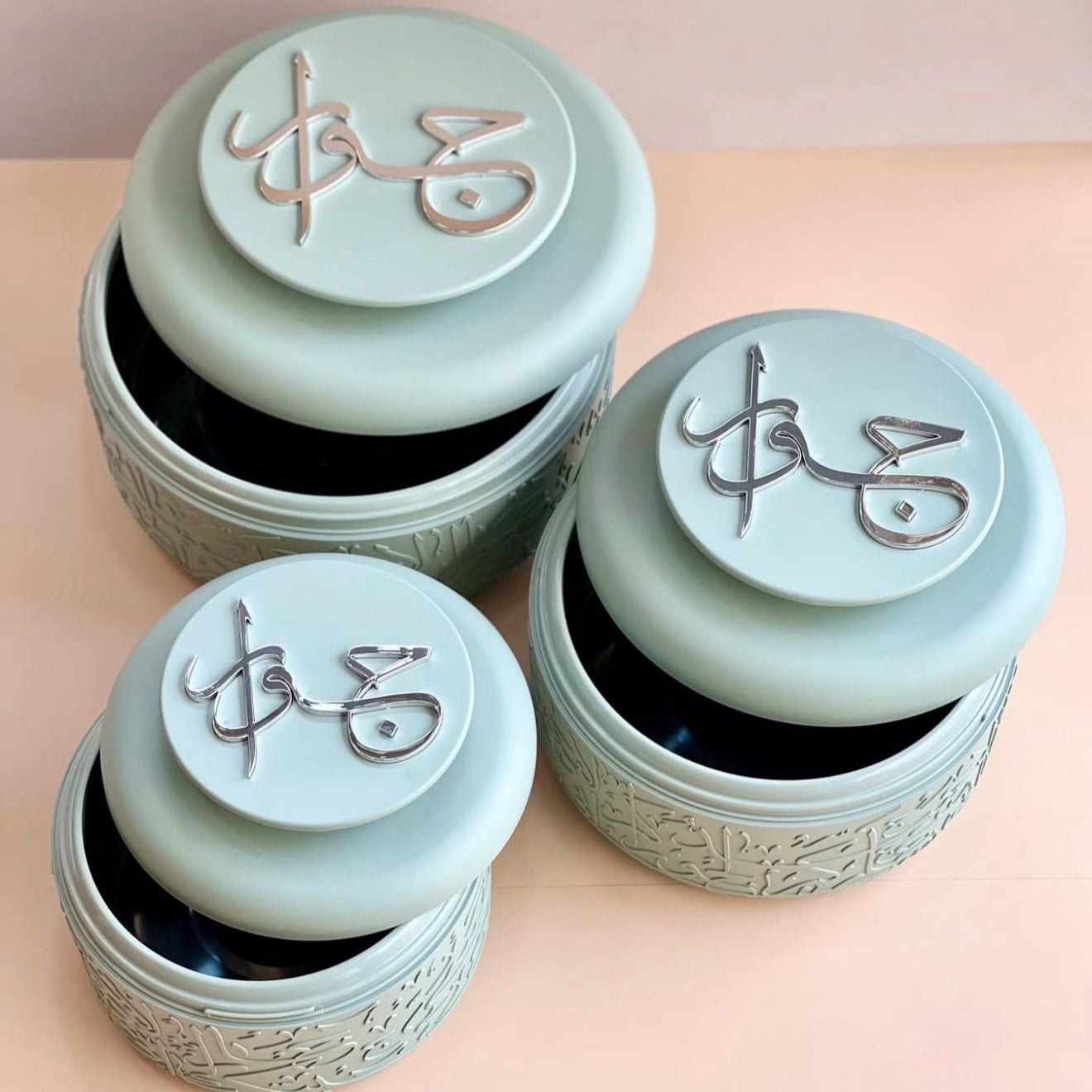Jiwar - Food Thermos/Warm Serv (Set of 3)- Mint Green & Silver