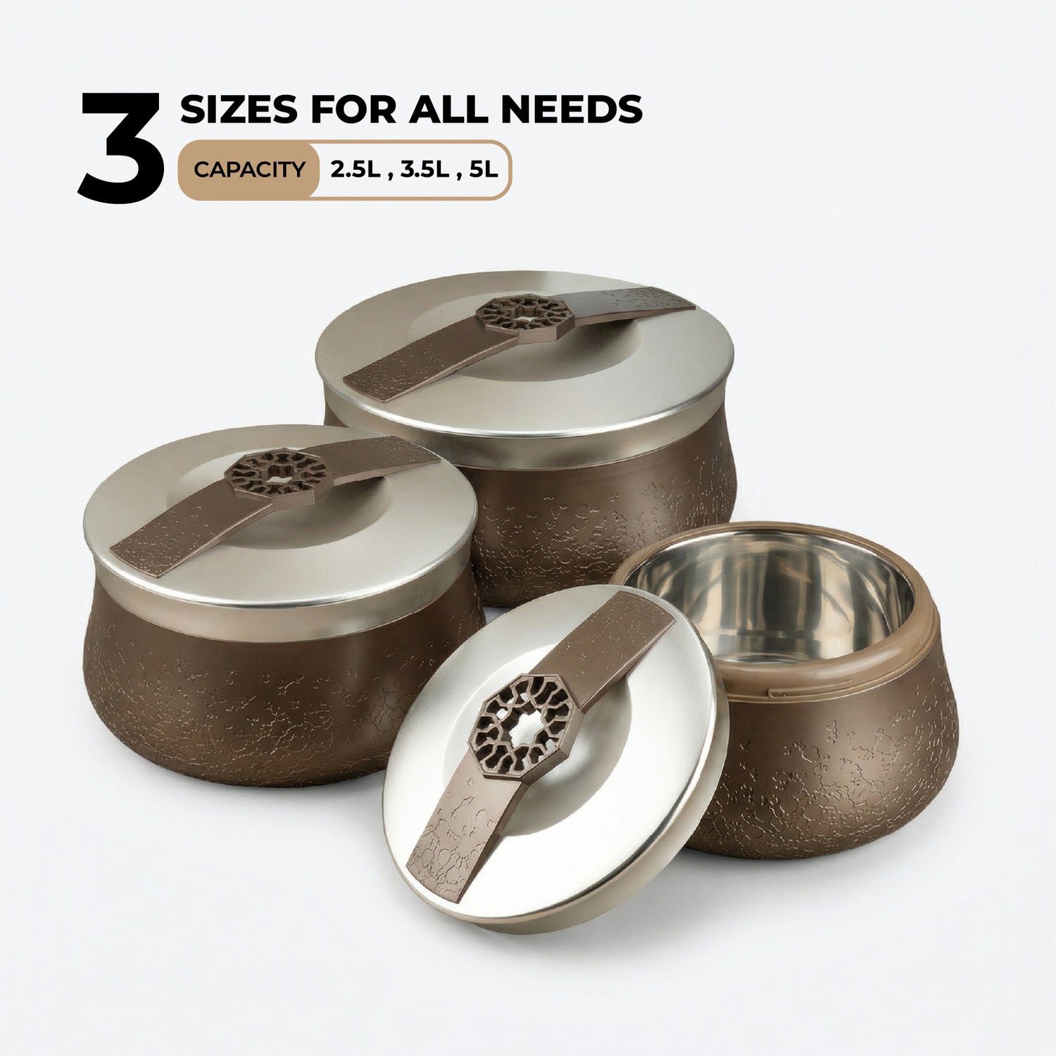 Nourhan - Food Thermos/ Warm Serv (Set of 3) - Bronze & Silver