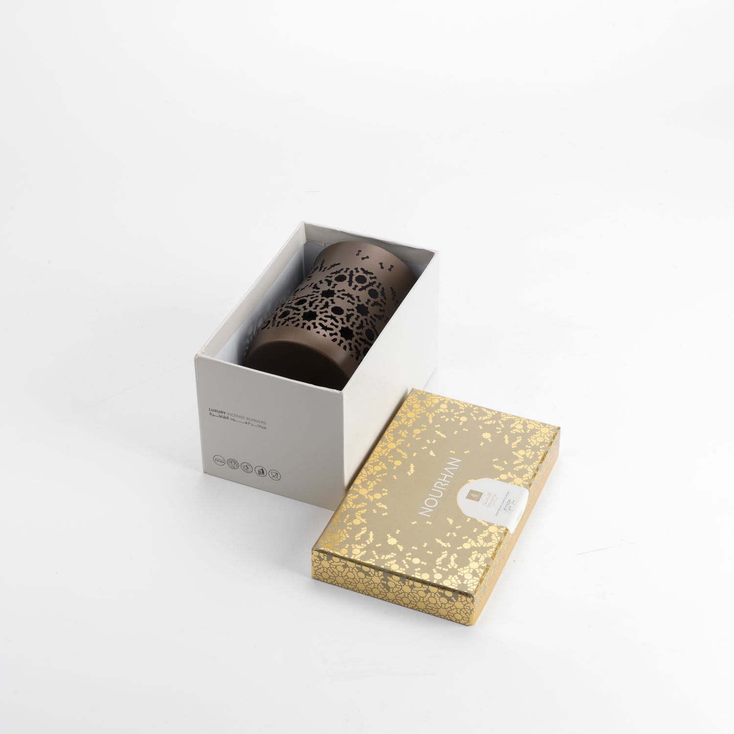 The Nourhan Candle Holder is designed to bring warmth, depth, and refined presence to your space. Crafted from premium stainless steel with intricate cut-out detailing, it combines decorative artistry with structured elegance.