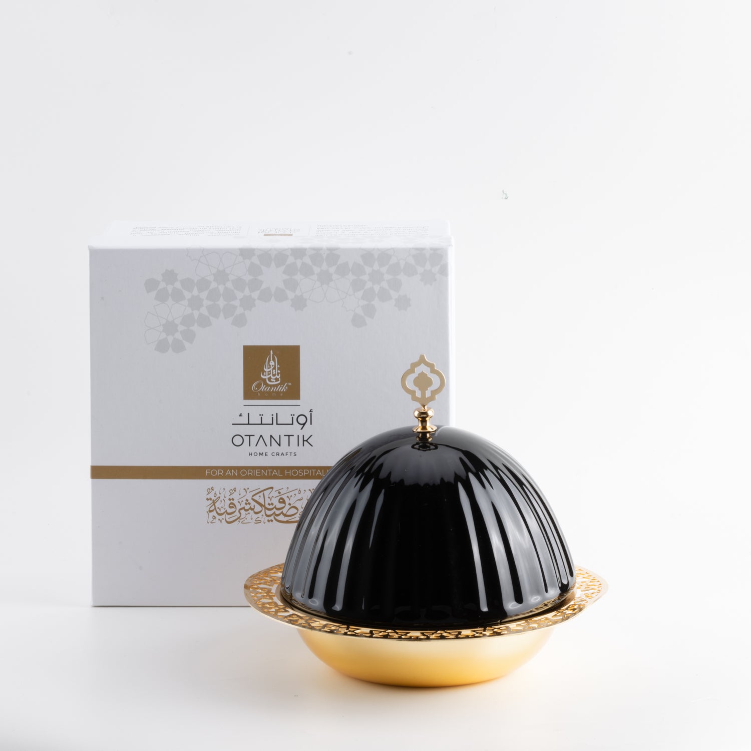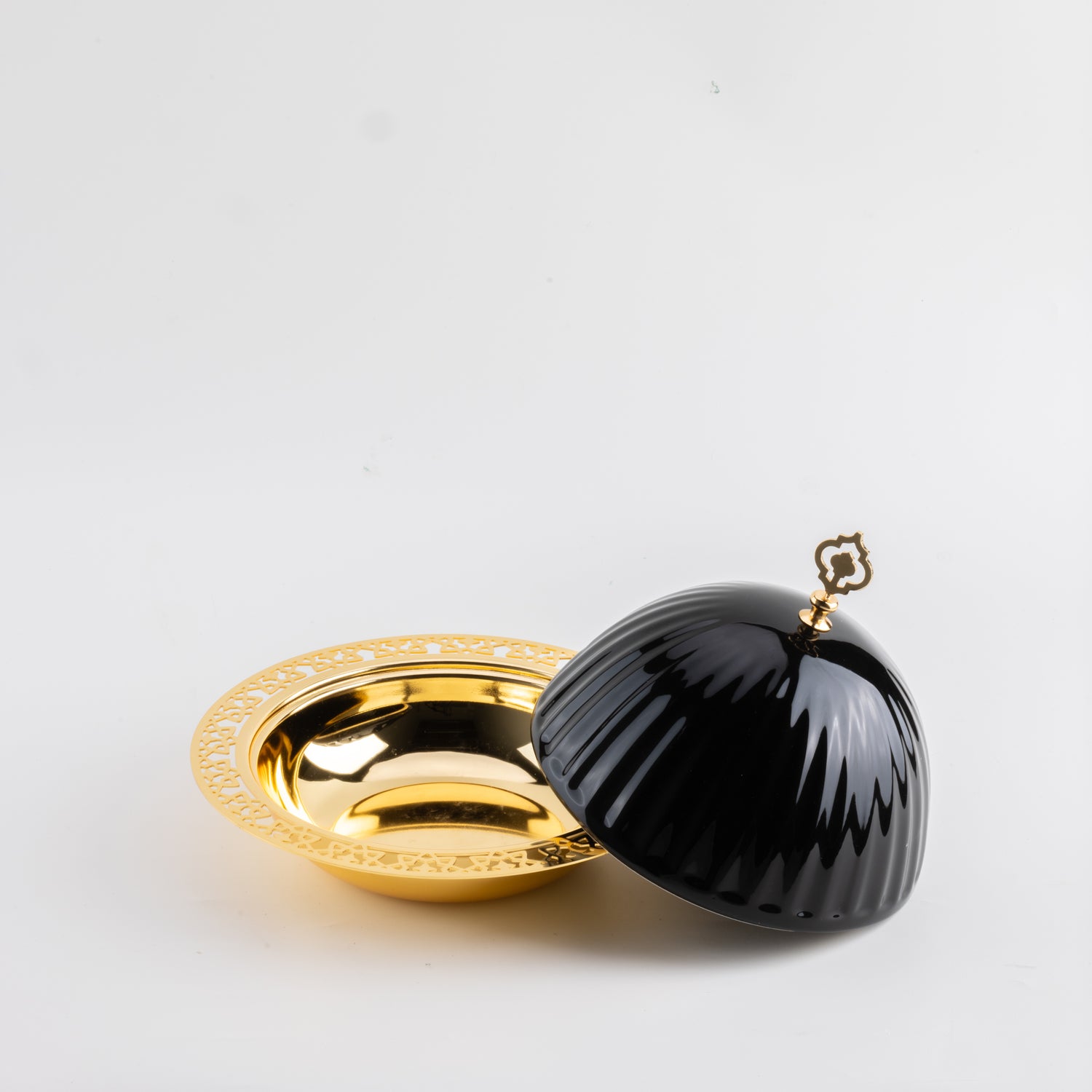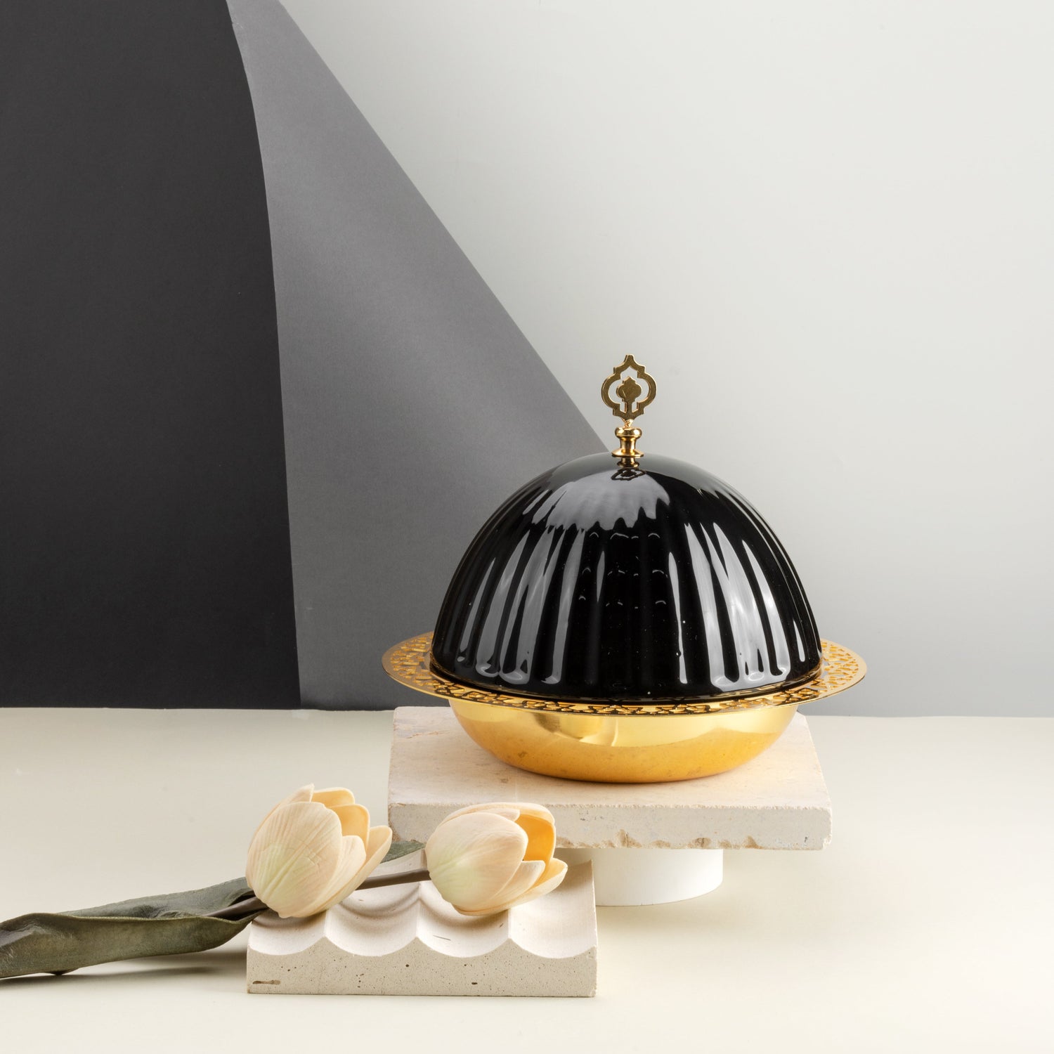 Exclusive - Medium Serving Platter with Porcelain Dome- Black & Gold