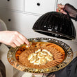 Elevate your dining experience with this Limited Edition Medium Serving Platter featuring a striking black and gold design. Perfectly sized for intimate gatherings, this platter brings sophistication to any occasion. Crafted with a high-quality stainless steel base, it boasts a luxurious porcelain dome that keeps your delicacies fresh and beautifully presented. The elegant black finish, accented with gold trim, adds a touch of modern opulence to your table. Whether serving appetizers, desserts, or main courses, this platter will make every meal feel like a special occasion.