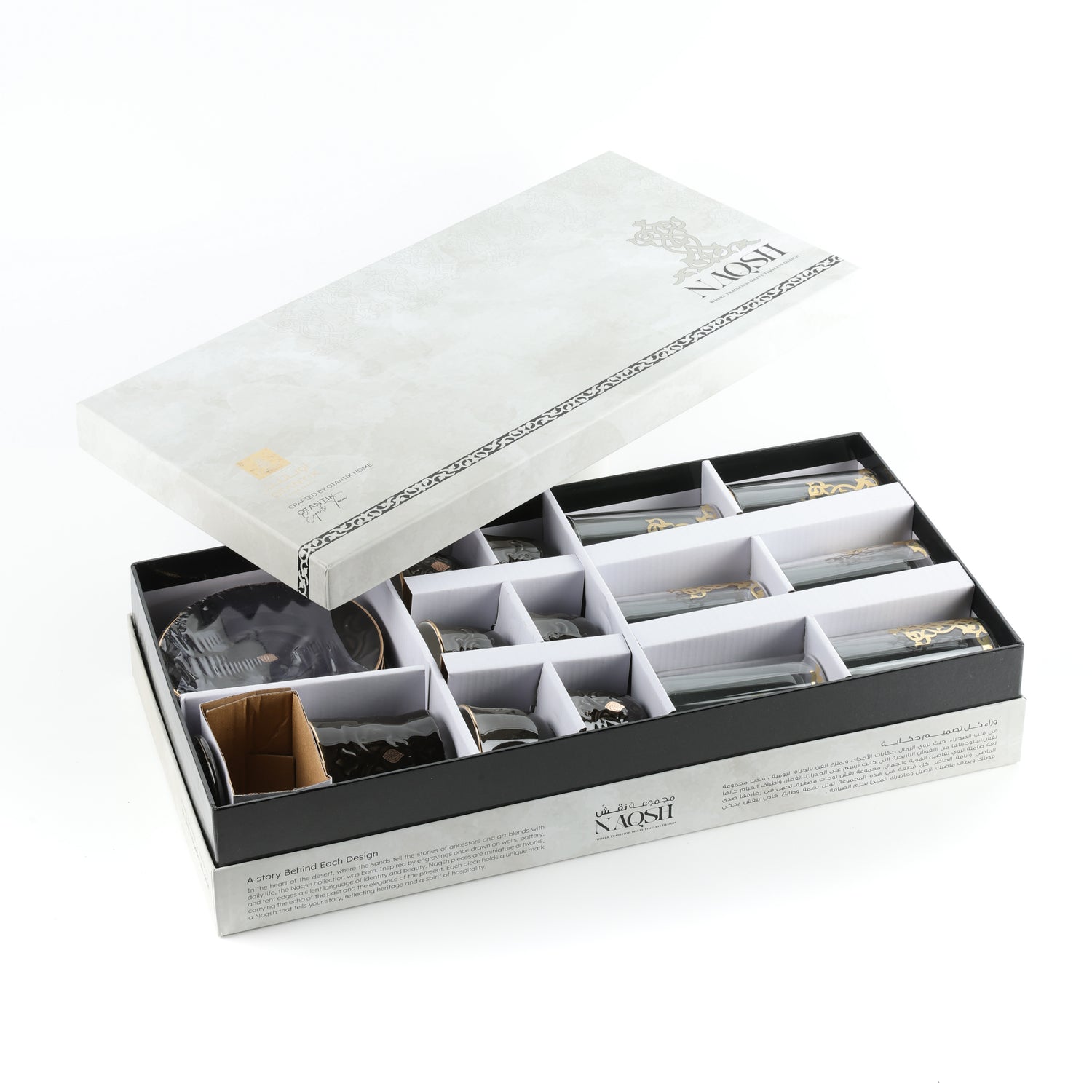 Celebrate the art of serving with the Naqsh Tea Set, a 19-piece collection designed to turn every tea moment into a reflection of elegance and grace. Thoughtfully crafted with meticulous attention to detail, this set brings harmony between timeless design and functional beauty.