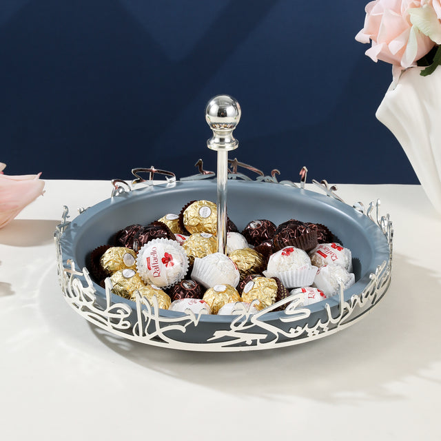 Jiwar - Large Serving Stand - Haze Blue & Silver