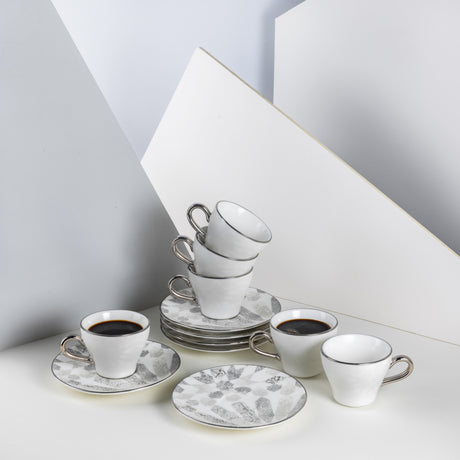 Amal - Tazas de café expreso/turco, (12 piezas) - Gris y plateado