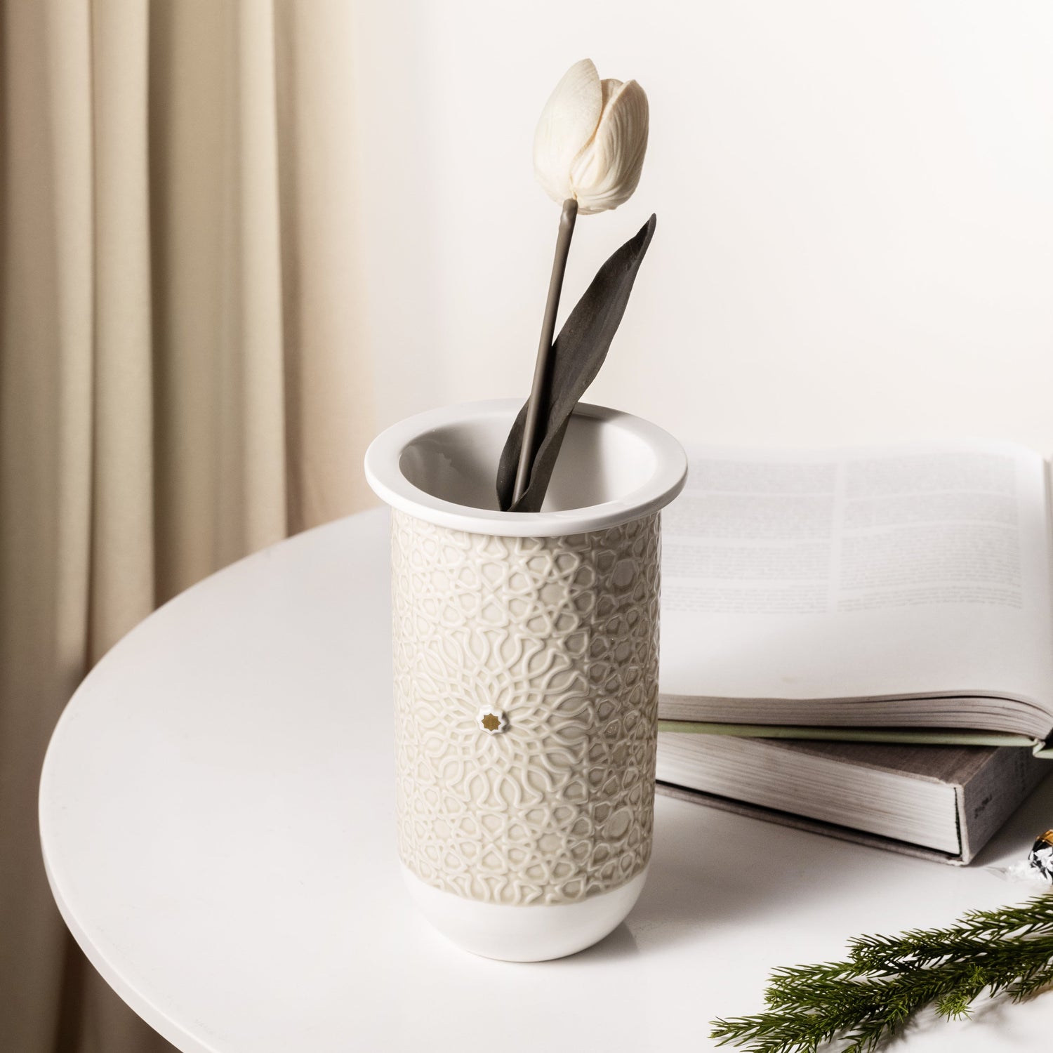 TThe Asala Medium Decorative Vase is the perfect blend of elegance and simplicity. Crafted with care, its clean lines and balanced design make it a versatile addition to any room. Whether filled with flowers or showcased on its own, this vase brings a subtle yet impactful touch to your space, adding character and charm without overwhelming the atmosphere.