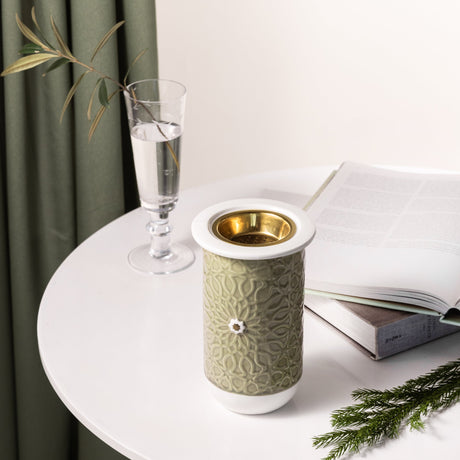 Asala - Small Lantern Candle Holder - Olive Green & Gold