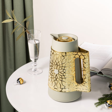 Asala - Medium Decorative Canister - Olive Green & Gold