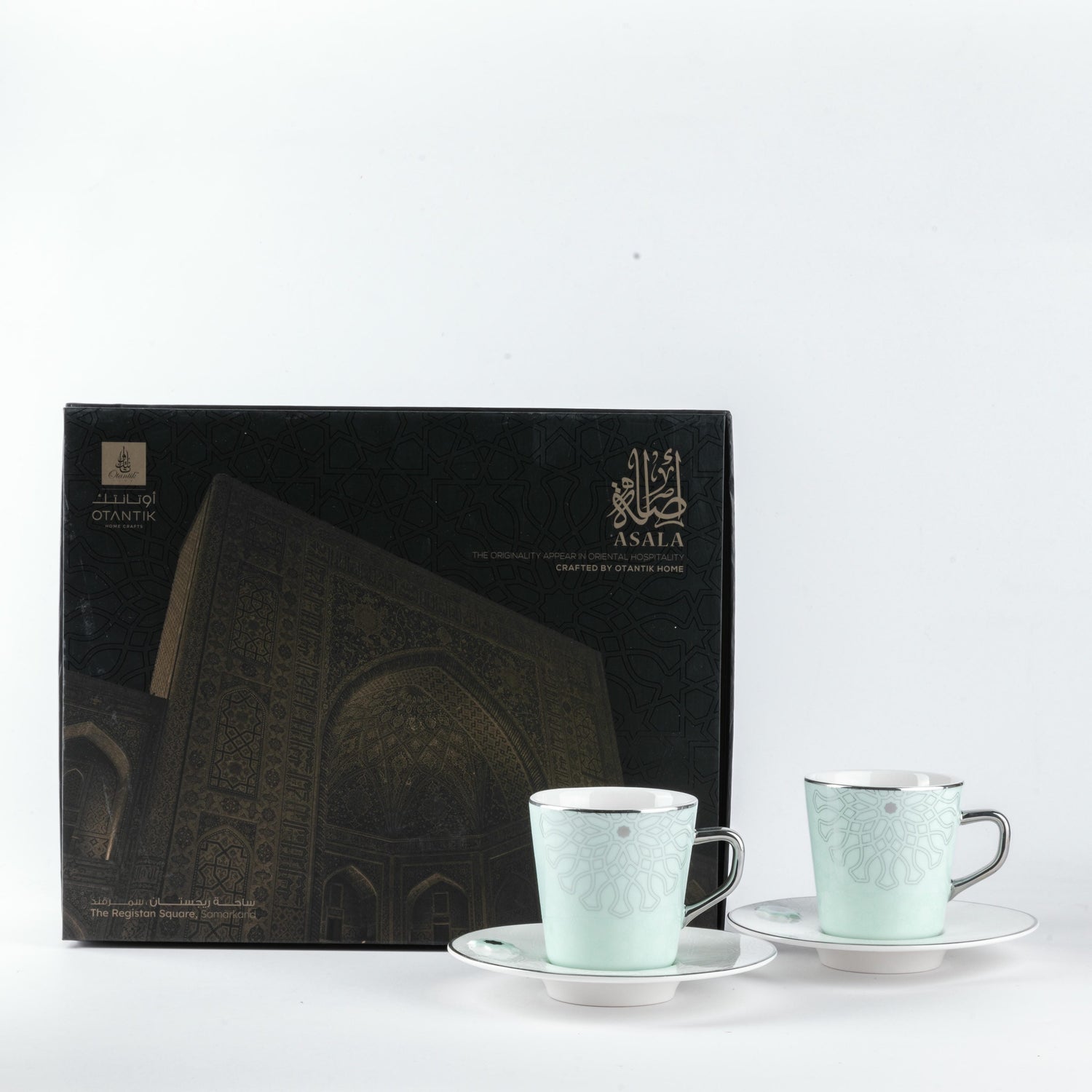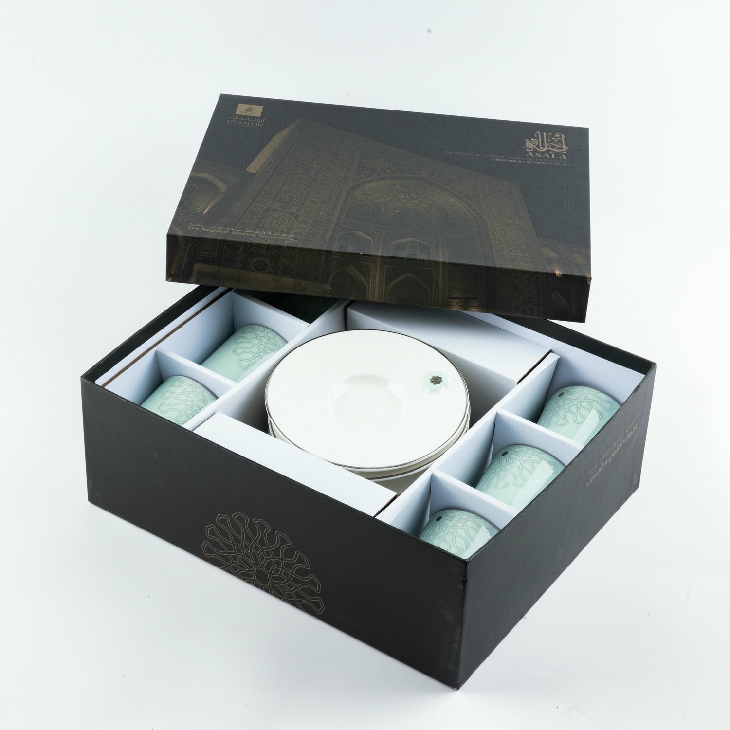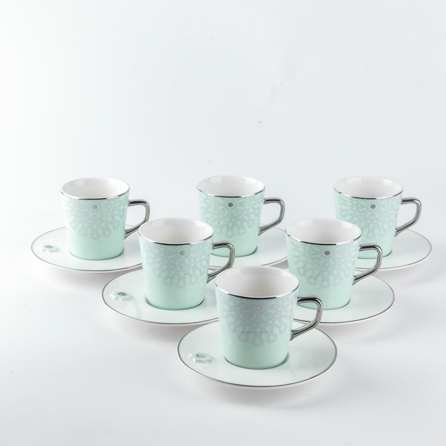 Asala - Cappuccino Set (12-Pc) - Teal & Silver