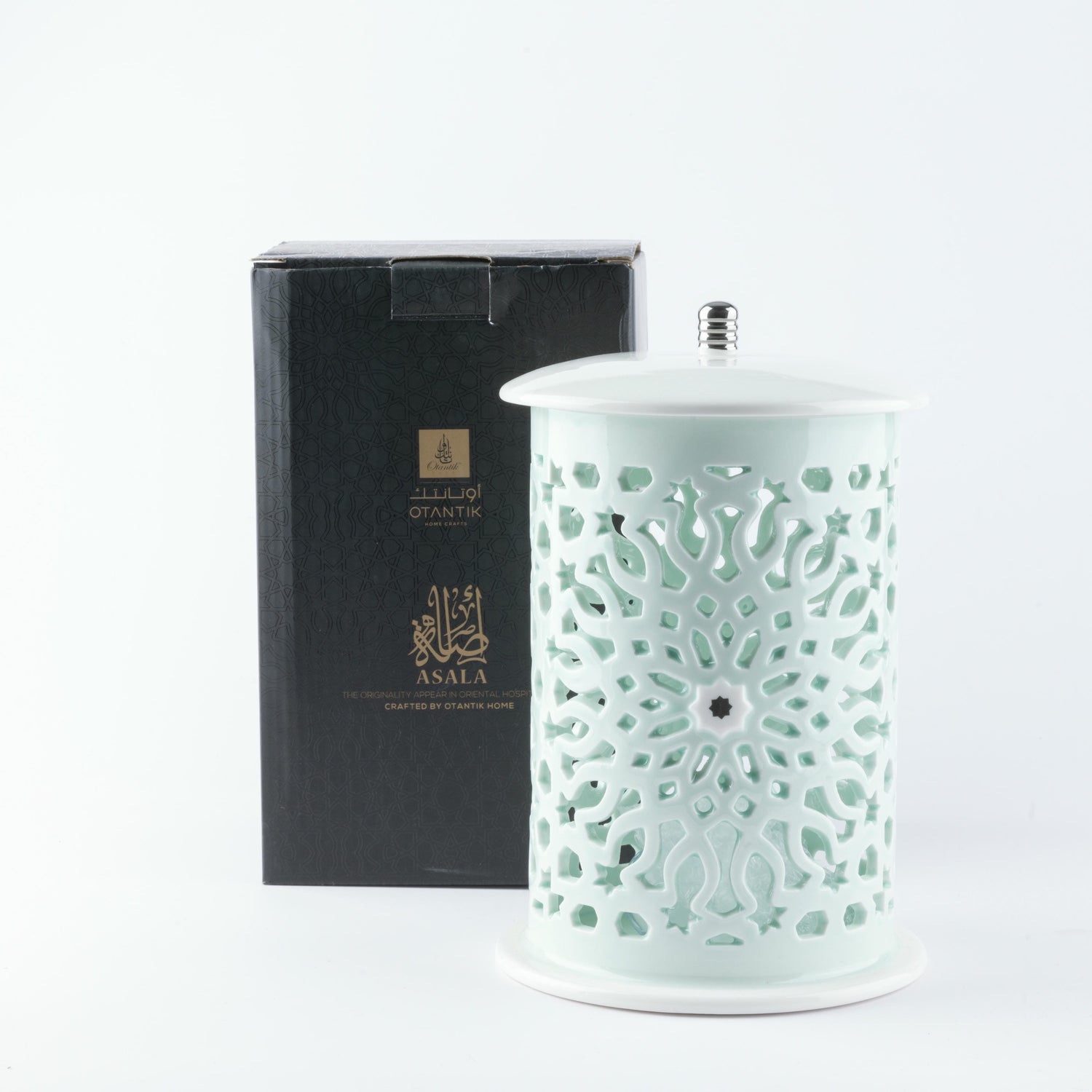 Asala - Large Lantern Candle Holder - Teal & Silver