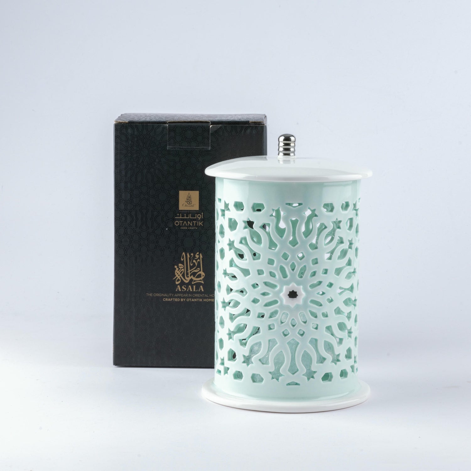 The Asala Lantern Candle Holder in medium size offers the ideal blend of elegance and presence. Meticulously designed and adorned with beautiful detailing, it emits a captivating glow that transforms any room or garden into a serene retreat. Perfect for entryways or larger tables, this lantern elevates any setting, creating a warm and inviting atmosphere.